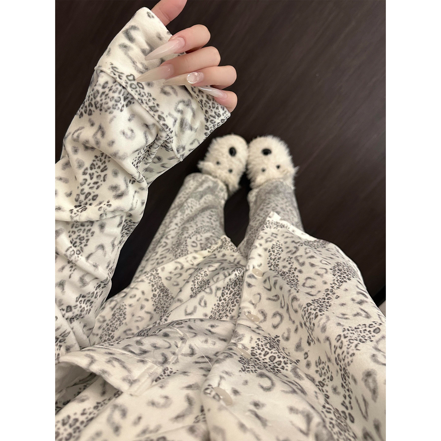 [在庫あり] Pure Desire セクシーなヒョウ柄長袖アイスシルクパジャマ女性用 2025 春と秋の新しいズボンスーツホームウェア