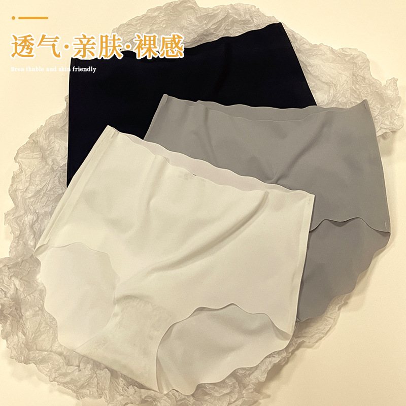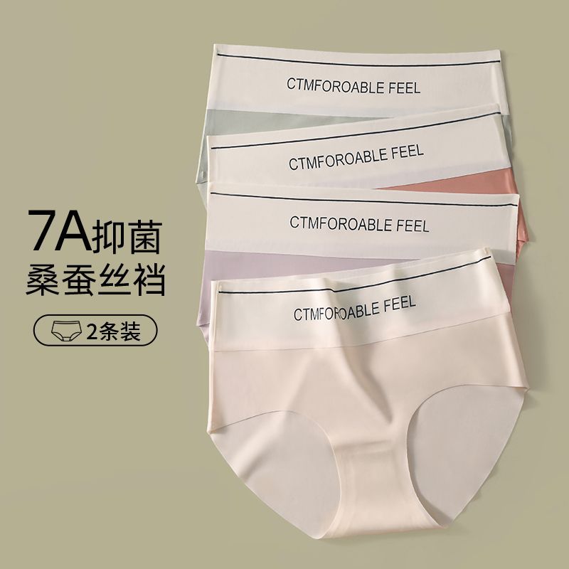 冰丝内裤女士拼色7A桑蚕丝抑菌底裆裸感亲肤无痕中高腰薄三角底裤