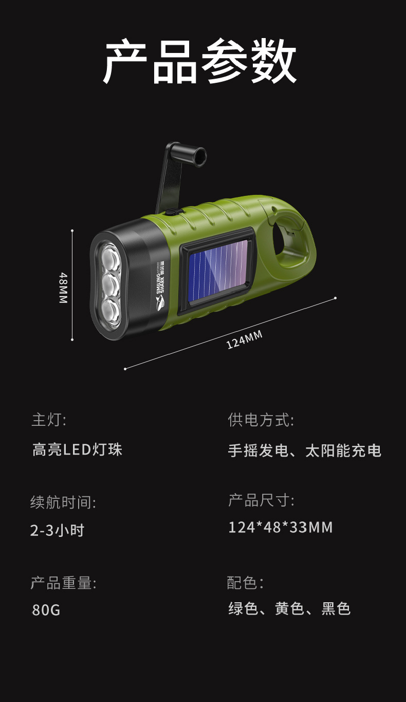 手摇充电ABS工作灯带挂扣设计手电筒多功能户外应急灯太阳能