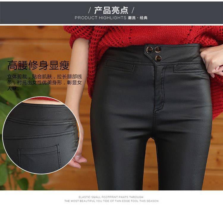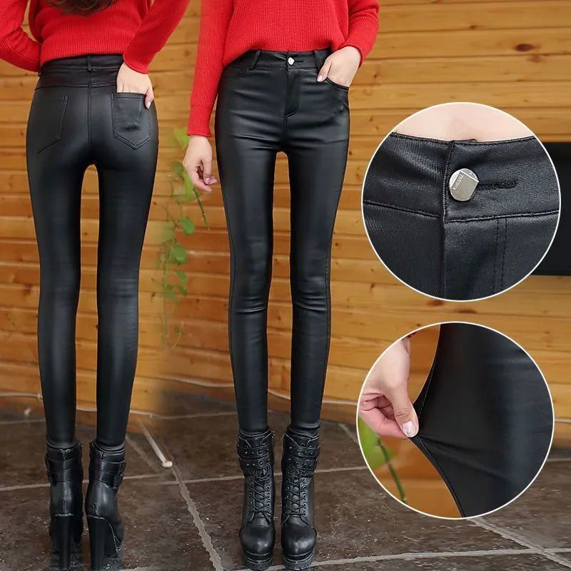 2025年冬季新款加绒加厚pu皮哑光紧身弹力打底裤显瘦高腰皮裤子女