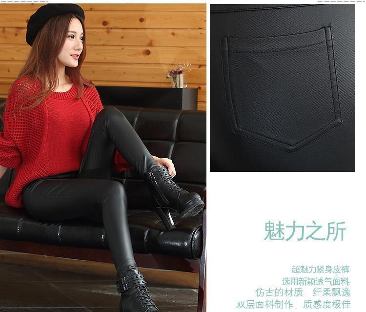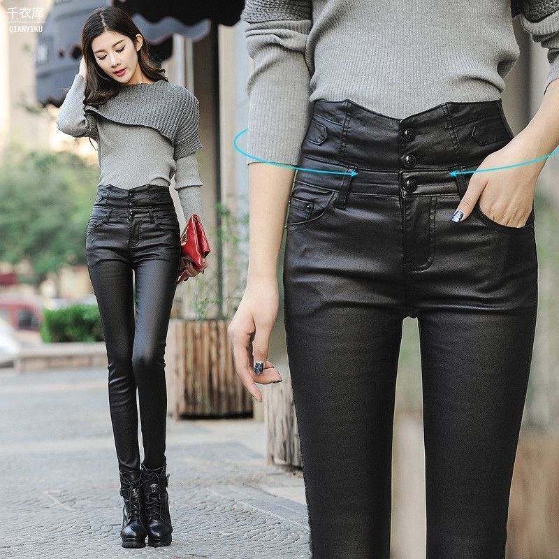 皮裤女加绒加厚款大码冬季韩版紧身高腰显瘦小脚裤保暖外穿打底裤