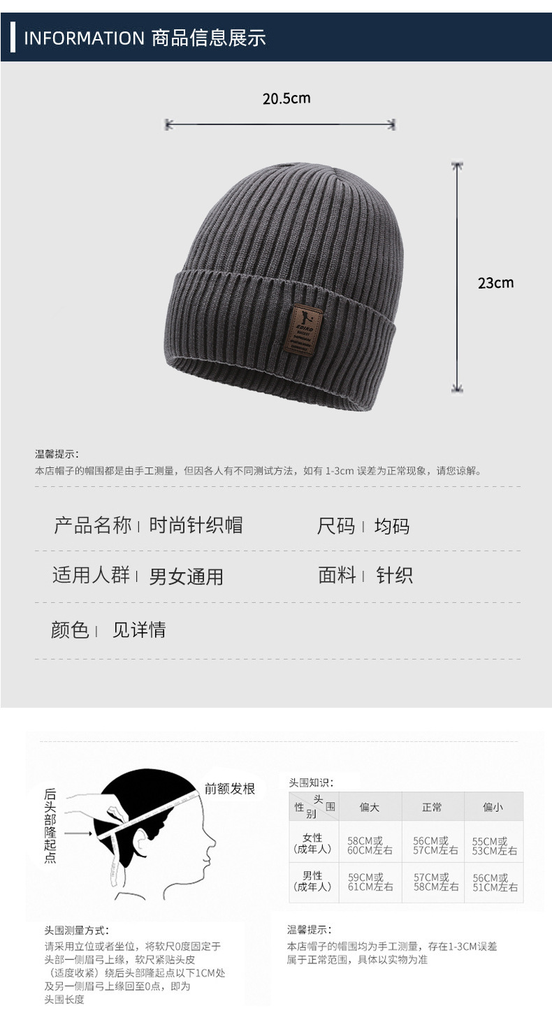 男性の帽子は冬の青年が暖かくて、ニットの毛糸帽を厚くします。