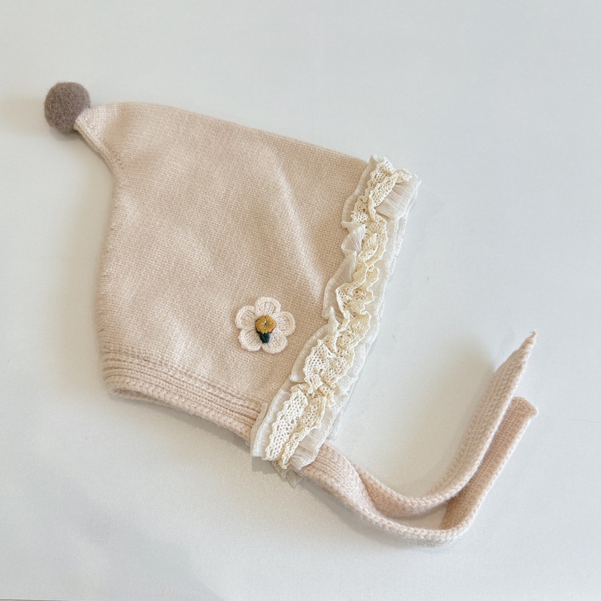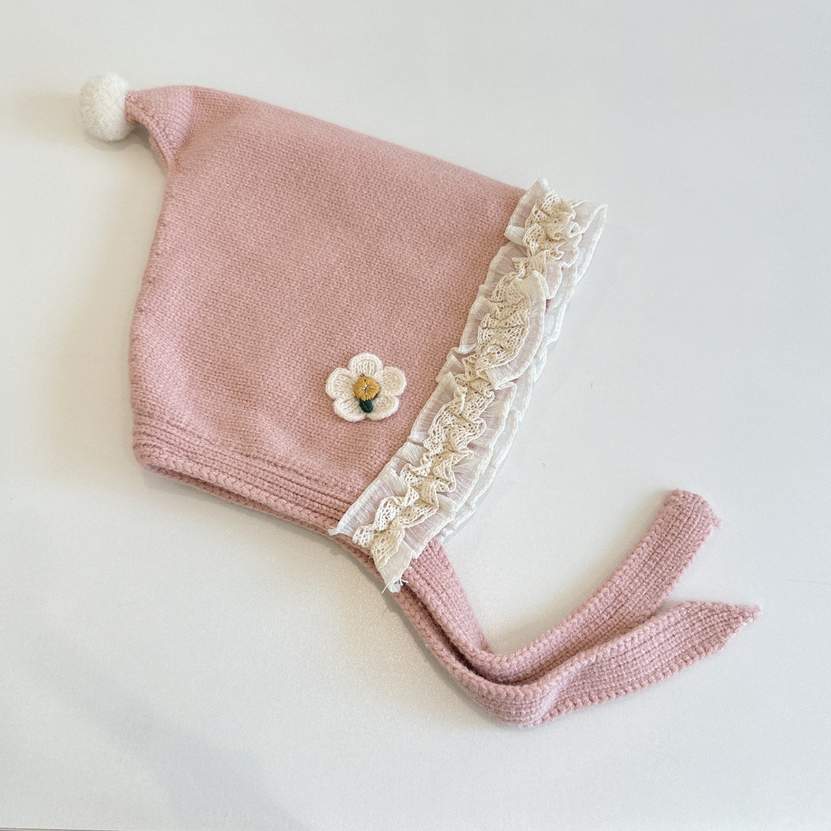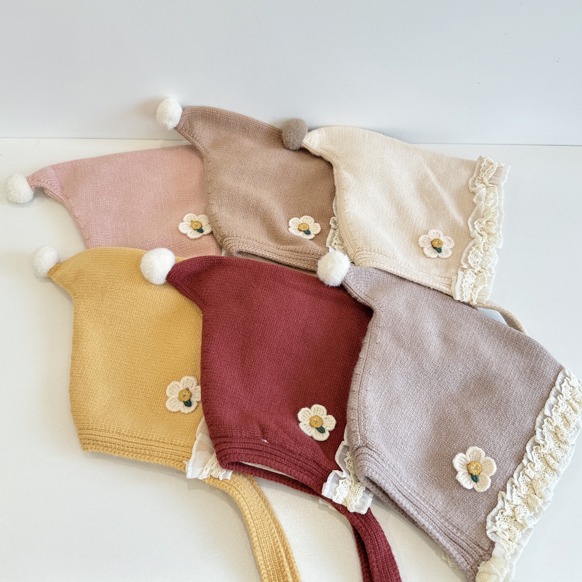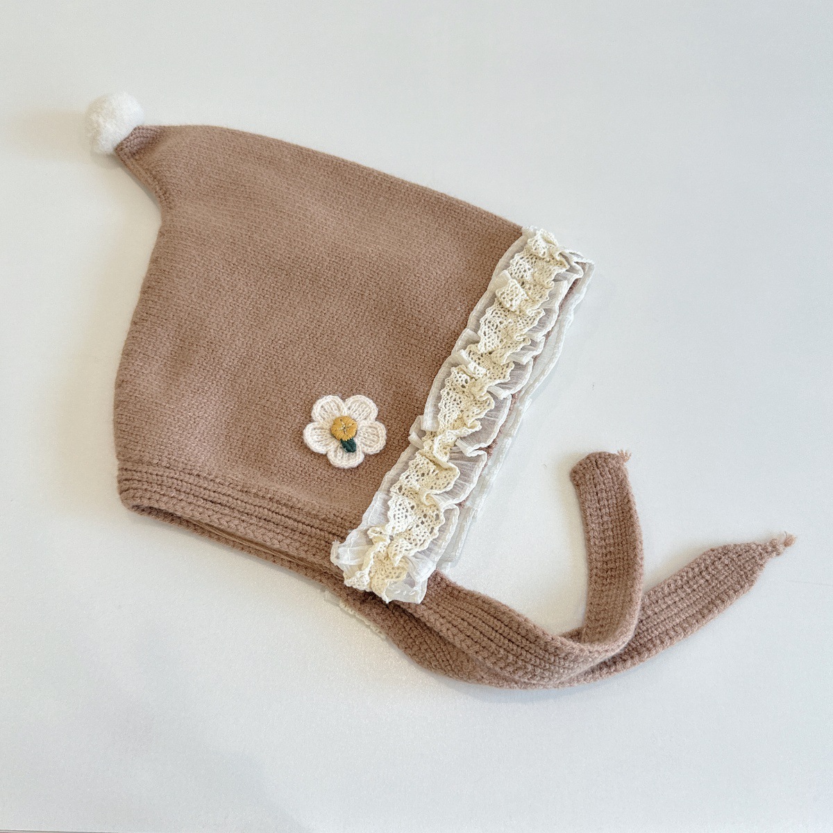 儿童帽子秋冬双层护耳帽宝宝小花星星公主防风针织毛线帽女巫师帽