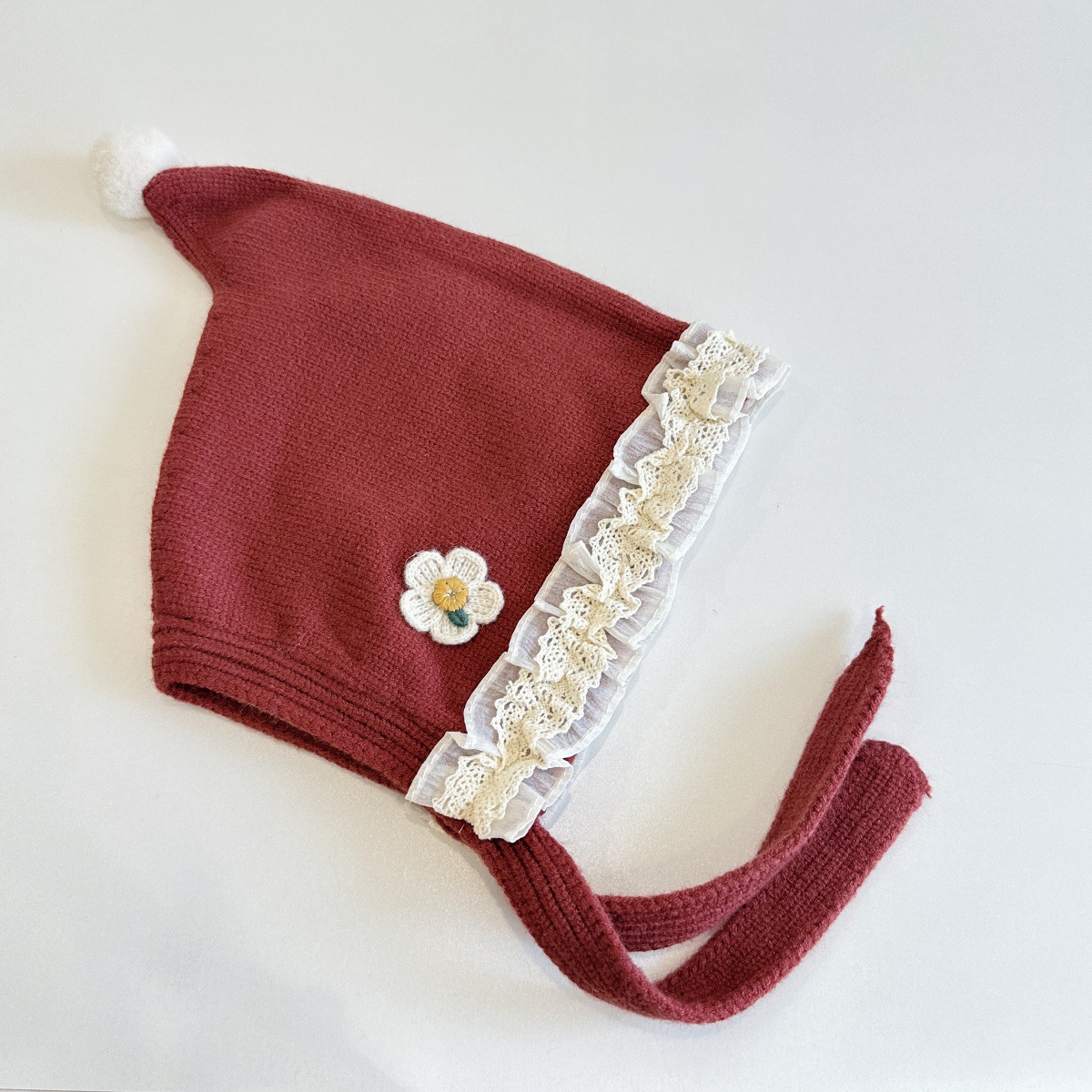 婴儿帽子春秋款可爱精灵帽防风保暖针织护耳小红帽宝宝色毛线帽