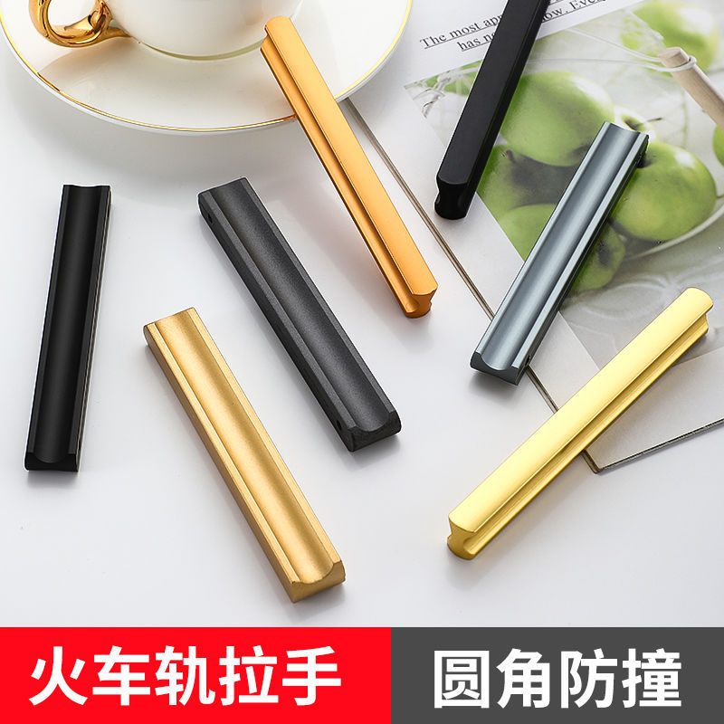 モダンでシンプルなソリッドトレインレールハードウェアブラックシューズキャビネットワードローブキャビネットドア引き出し拡張アルミ合金ハンドル