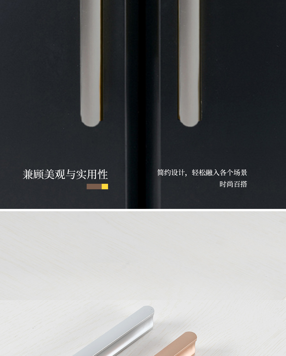 轻奢柜门拉手轨道工字型拉手橱柜抽屉衣书柜黑色金色铝合金拉手