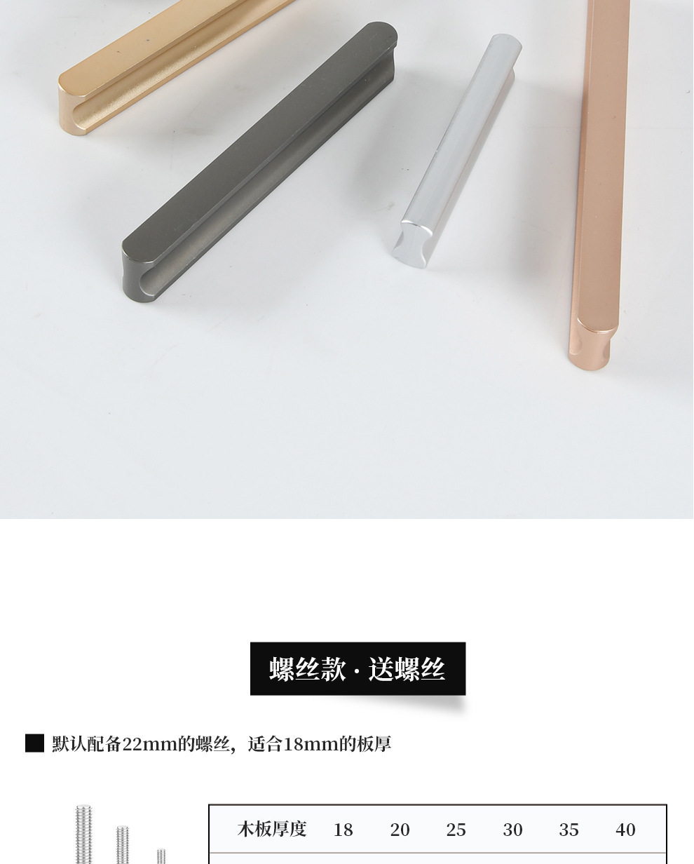 モダンでシンプルなワードローブのドアハンドル、キャビネット家具、軽奢なドアハンドル、手作りの文字型、長めの丸頭引き出しハンドル