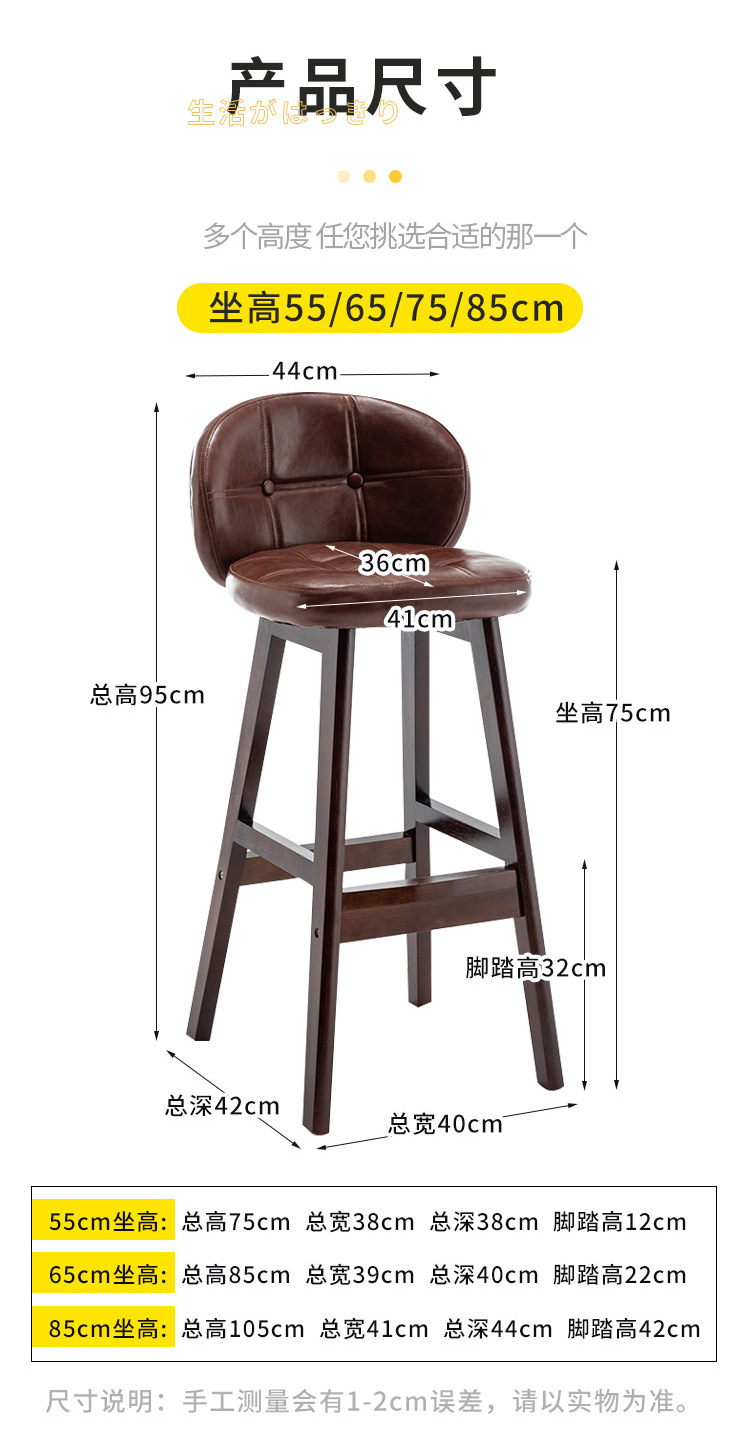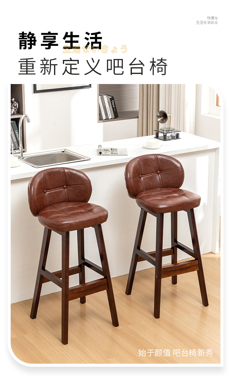 实木吧台椅子现代简约高脚凳靠背吧椅家用轻奢酒吧桌椅吧凳高凳子