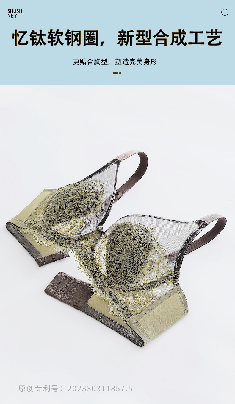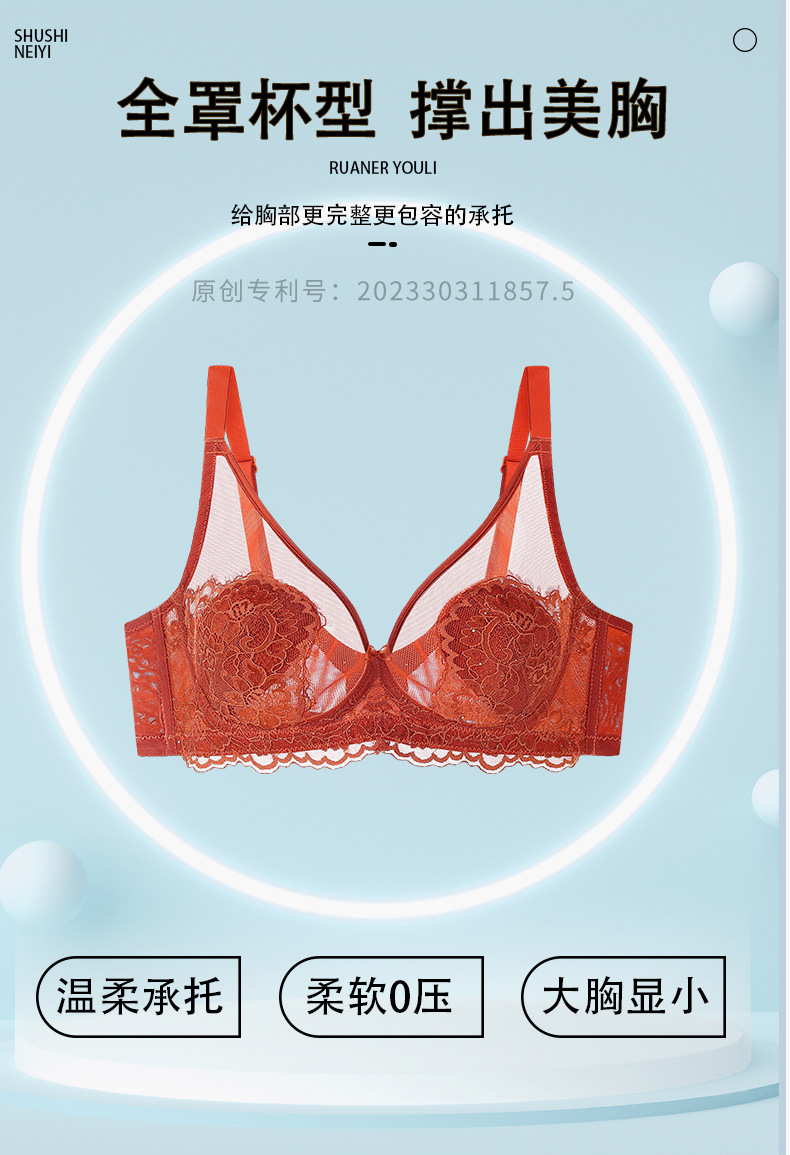 超薄款大胸显小女调整型收副乳防下垂软钢圈文胸6603蕾丝内衣套装