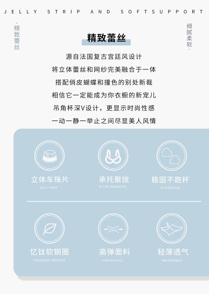 功能 聚拢,透气,上托,调整型,舒适,侧收,收副乳,大胸显小