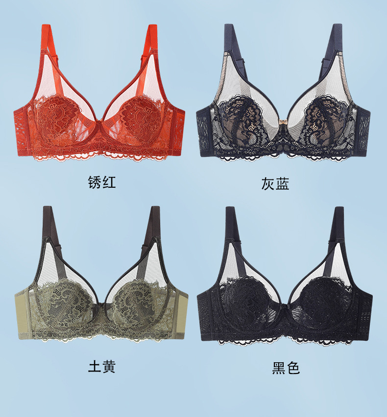 哇噢蕾丝女士内衣软钢圈透气收副乳胸罩高档大胸聚拢调整型文胸女