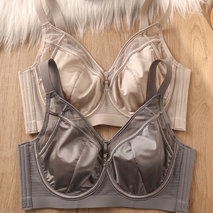 大胸显小缎面蚕丝显瘦薄款内衣女软钢圈防下垂调整型文胸聚拢胸罩
