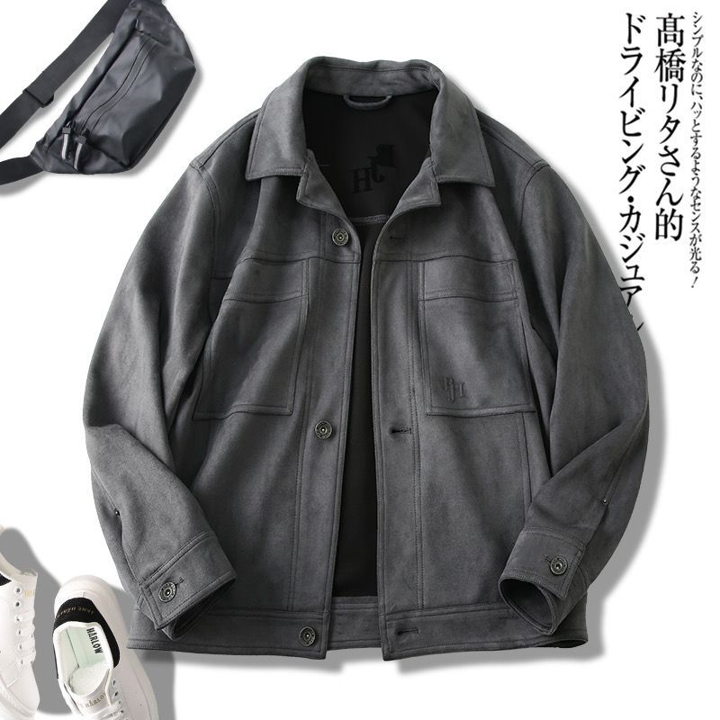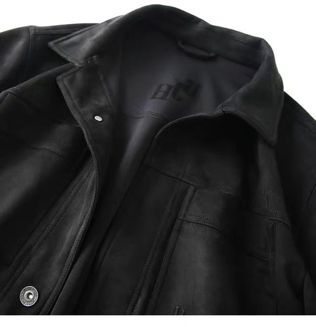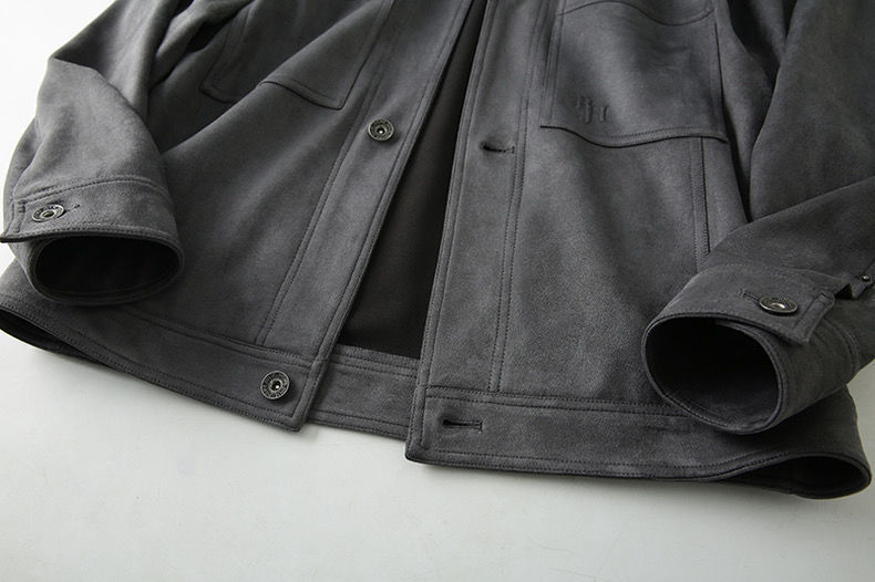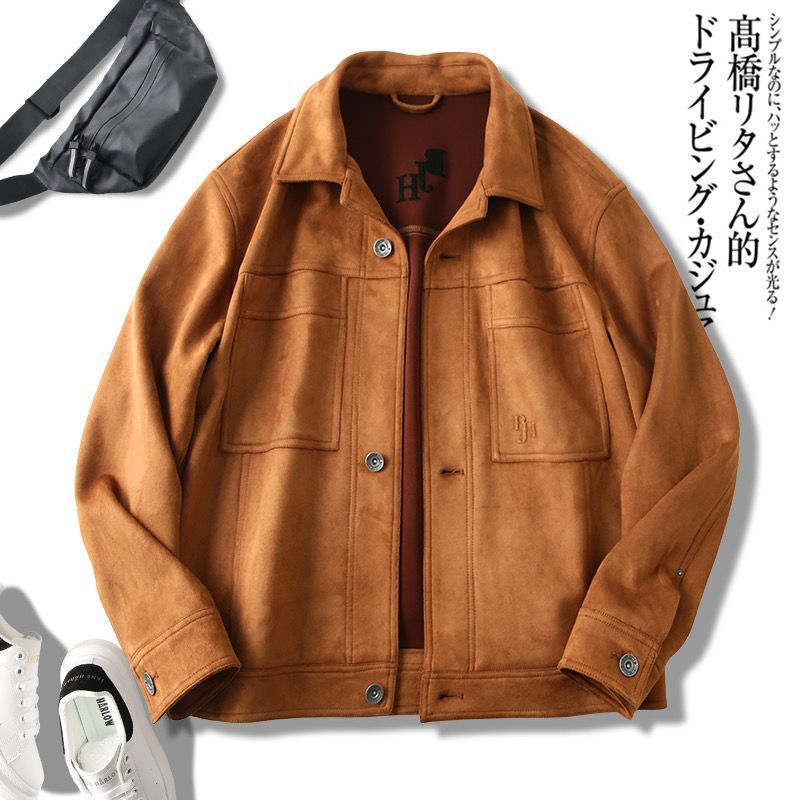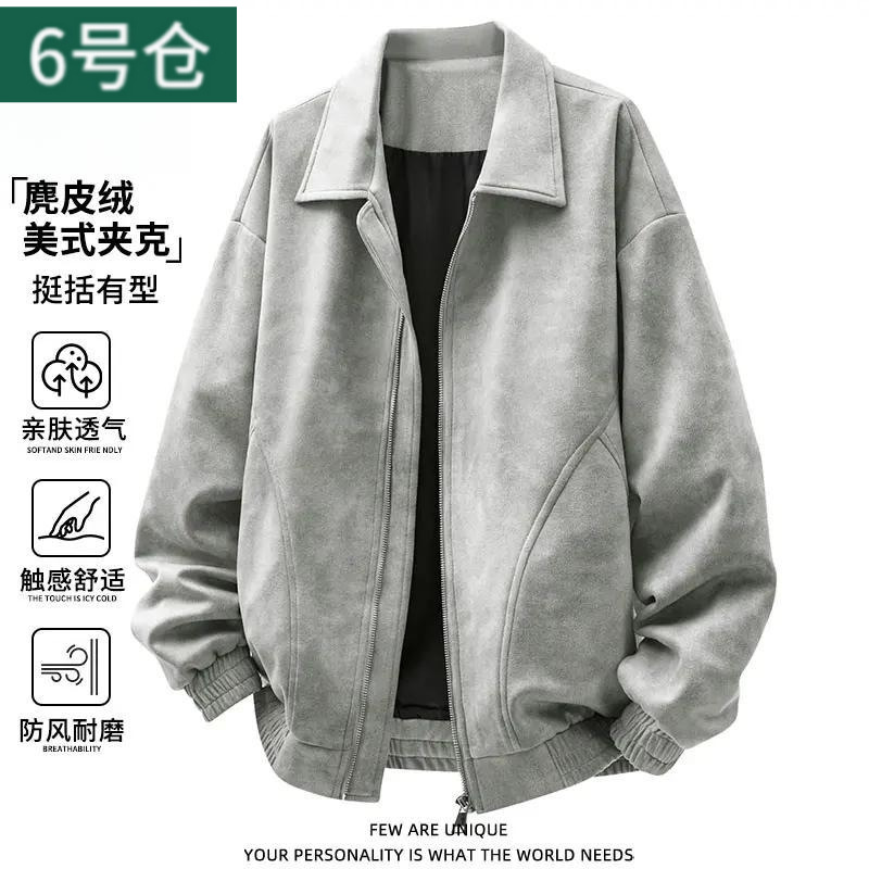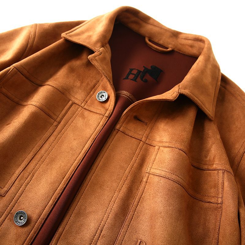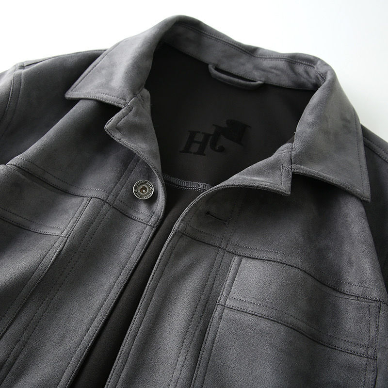 重磅麂皮绒男款美式复古高端秋冬男士翻领休闲多口袋工装夹克外套