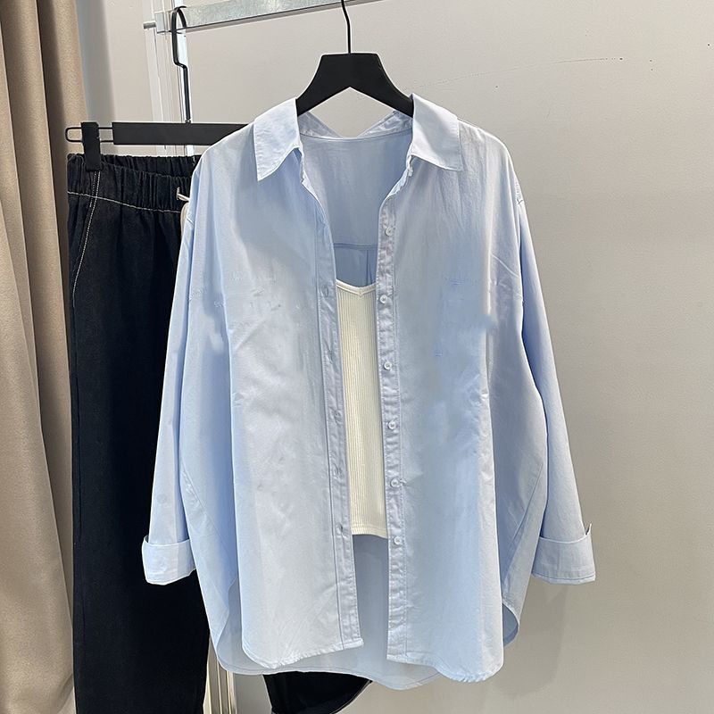 2025 夏綿日焼け止めブルーシャツ女性のカレッジスタイルショルダーシャツ日本日焼け止め長袖ジャケットトップ