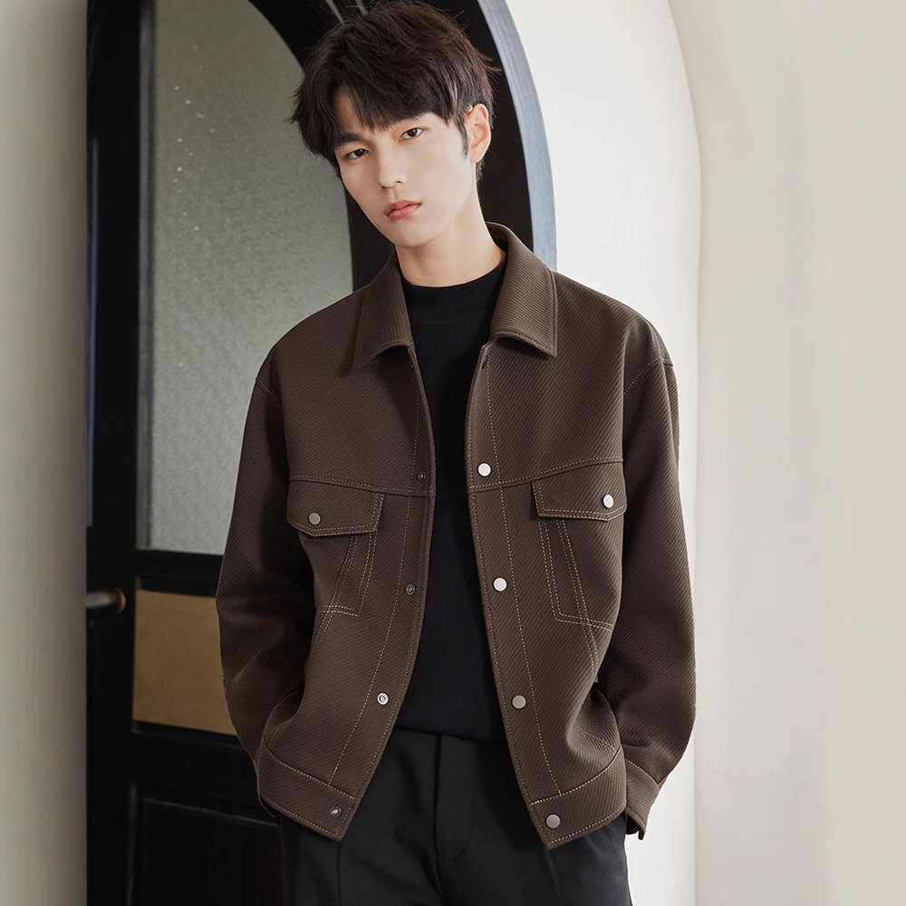 男士休闲夹克2025春秋季新款翻领宽松短款工装韩版潮男装外套上衣