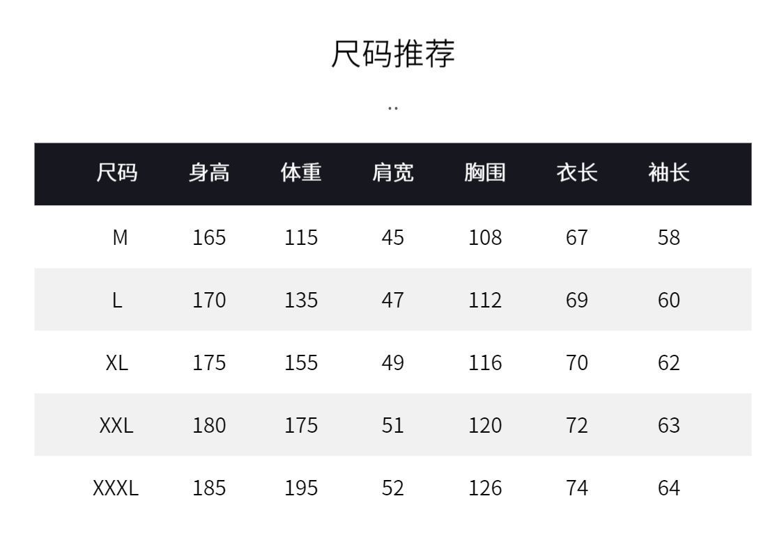 尺码 M 105-125斤,2XL 165-185斤,3XL 185-205斤,XL 145-165斤,L 125-145斤