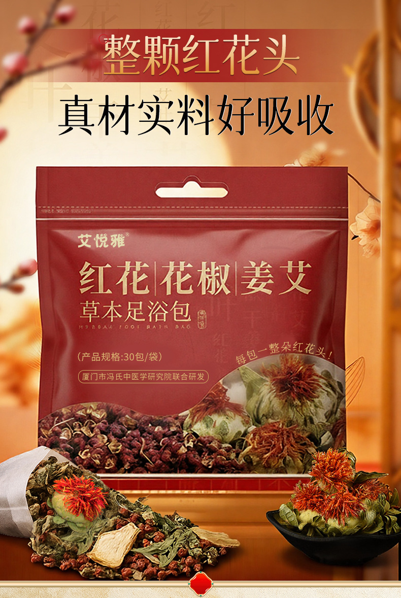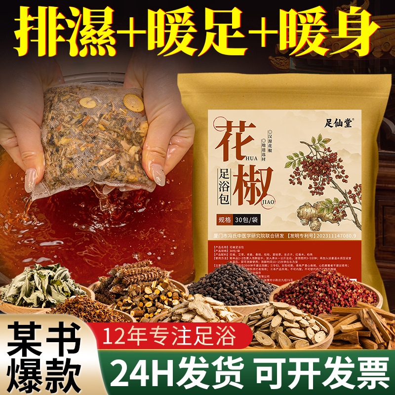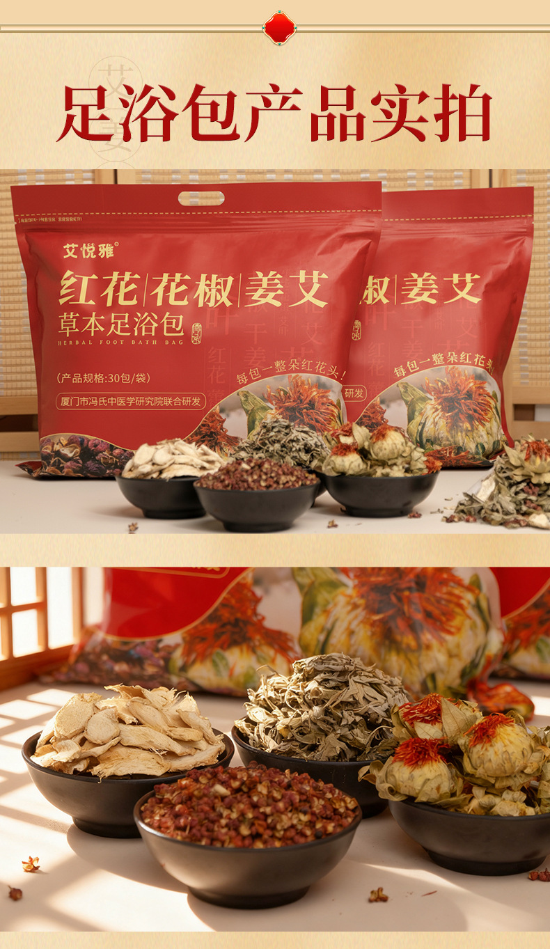 四味花椒姜艾足浴包家用草本沐足包泡脚药包红花老姜艾草泡脚包