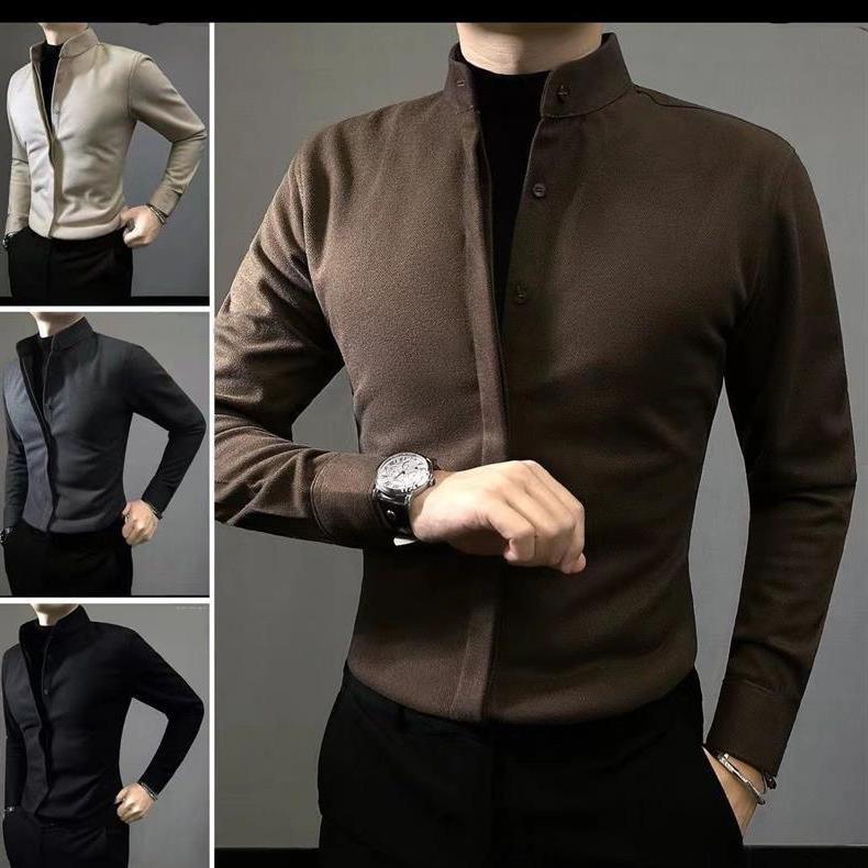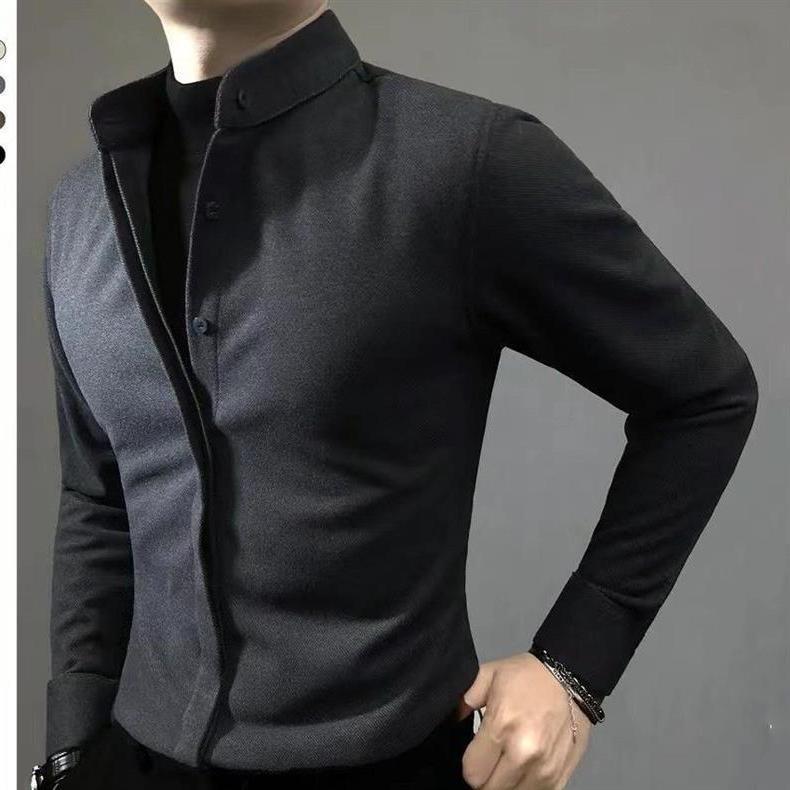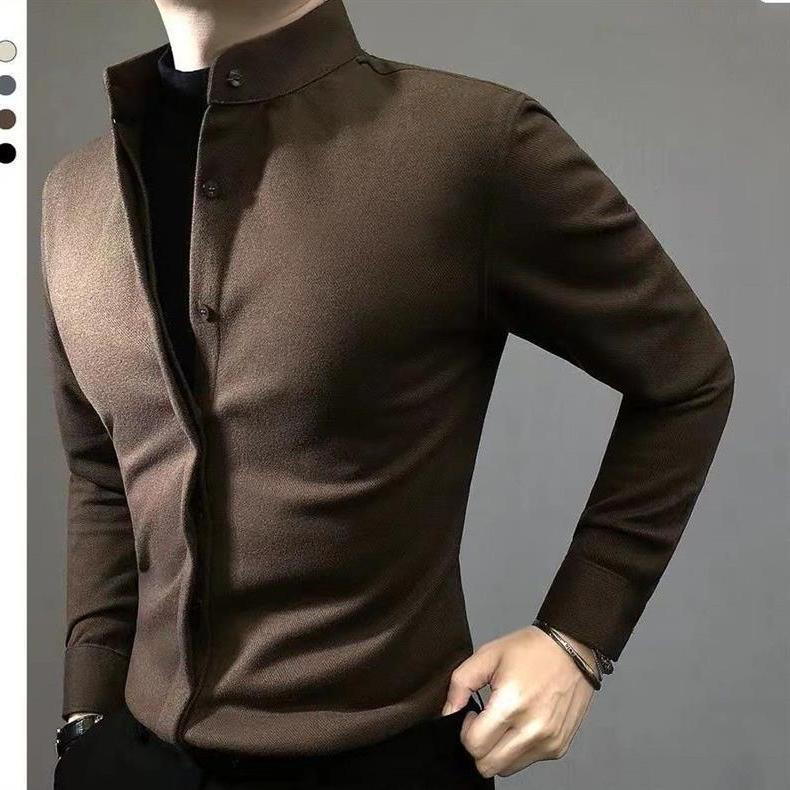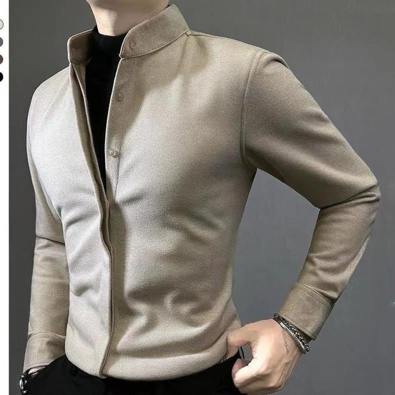 高级长袖修身毛呢保暖2025衬衣帅气秋冬轻奢百搭男士新款衬衫痞帅