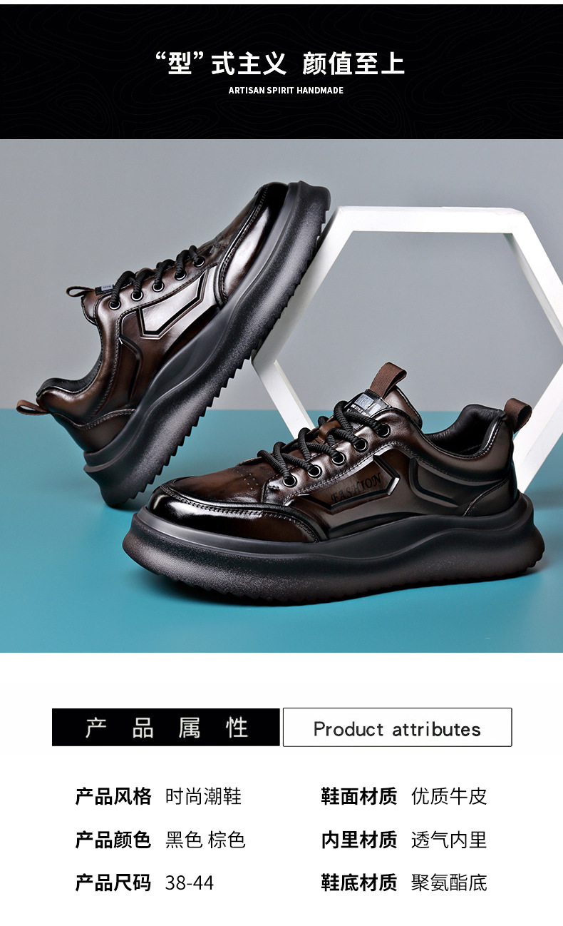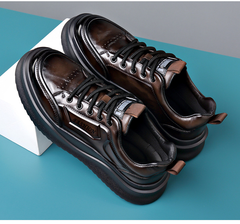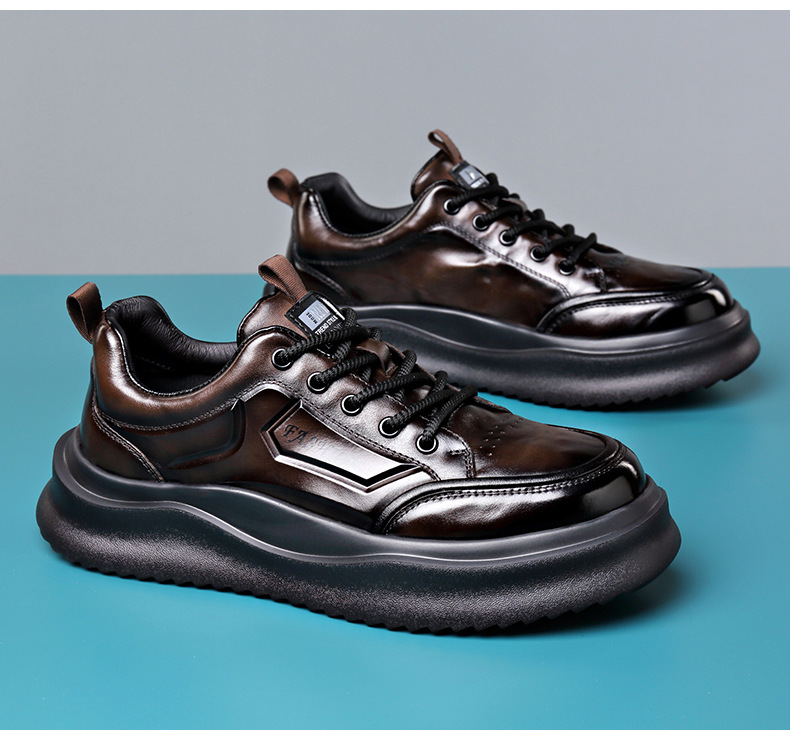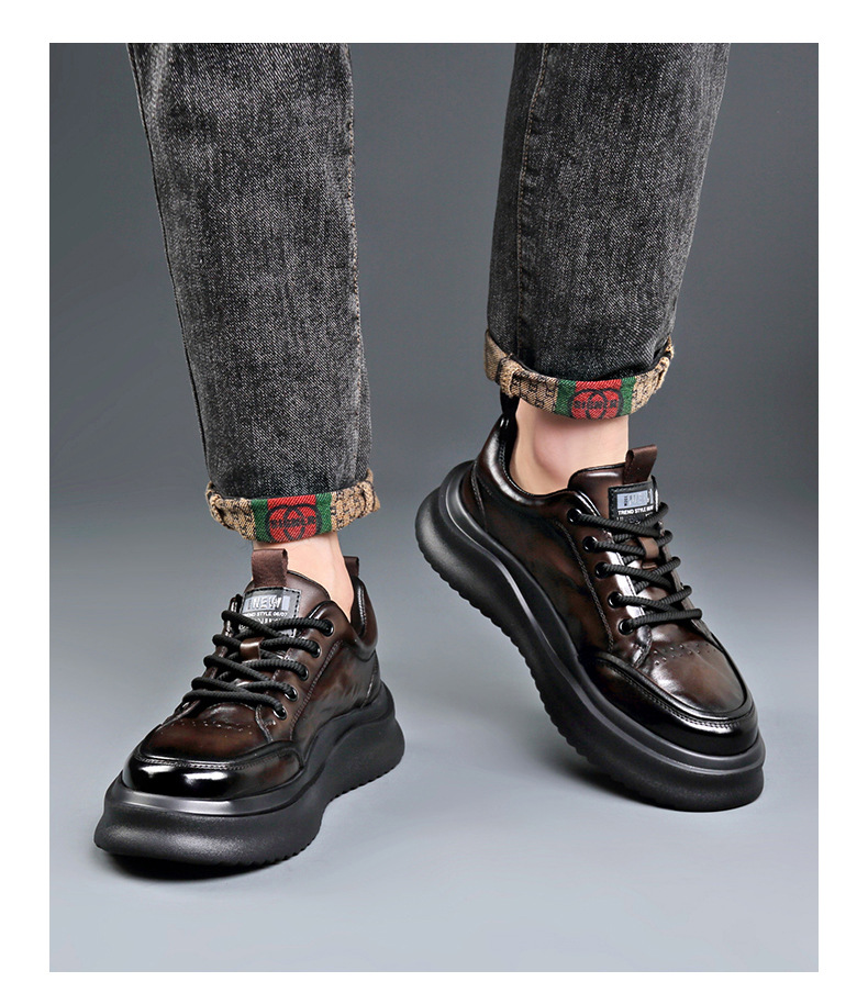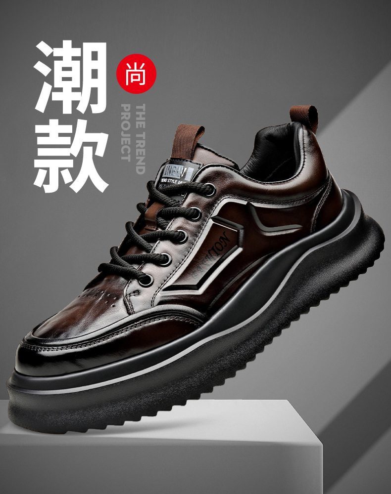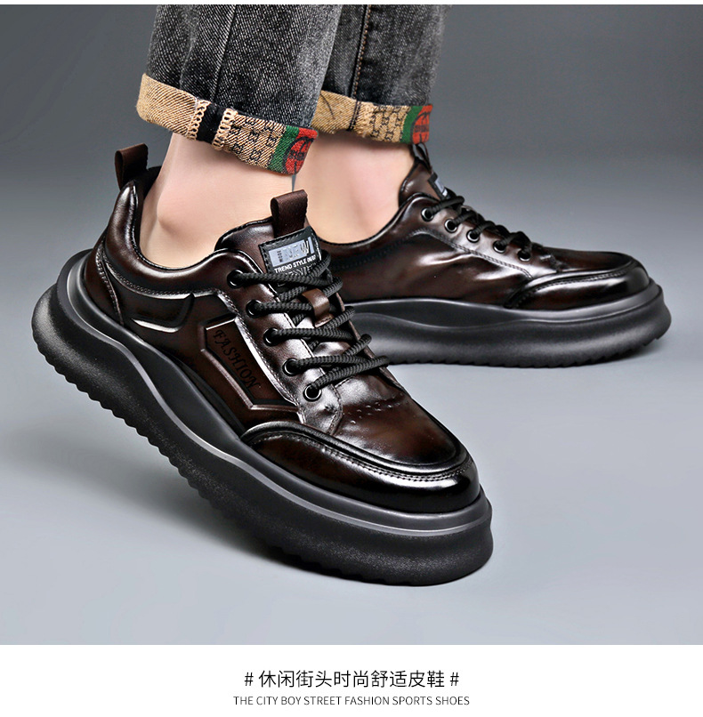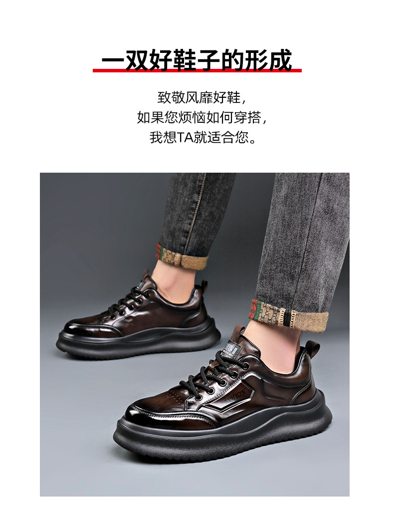 男鞋潮流真皮软底休闲鞋男透气运动板鞋厚底百搭皮鞋正装德比鞋