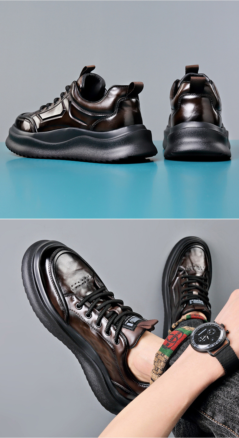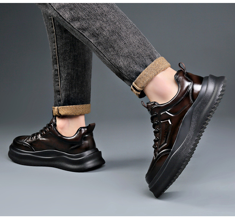 男鞋新款潮流真皮软底休闲鞋皮鞋男透气户外运动板鞋厚底百搭潮鞋