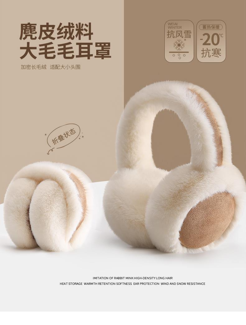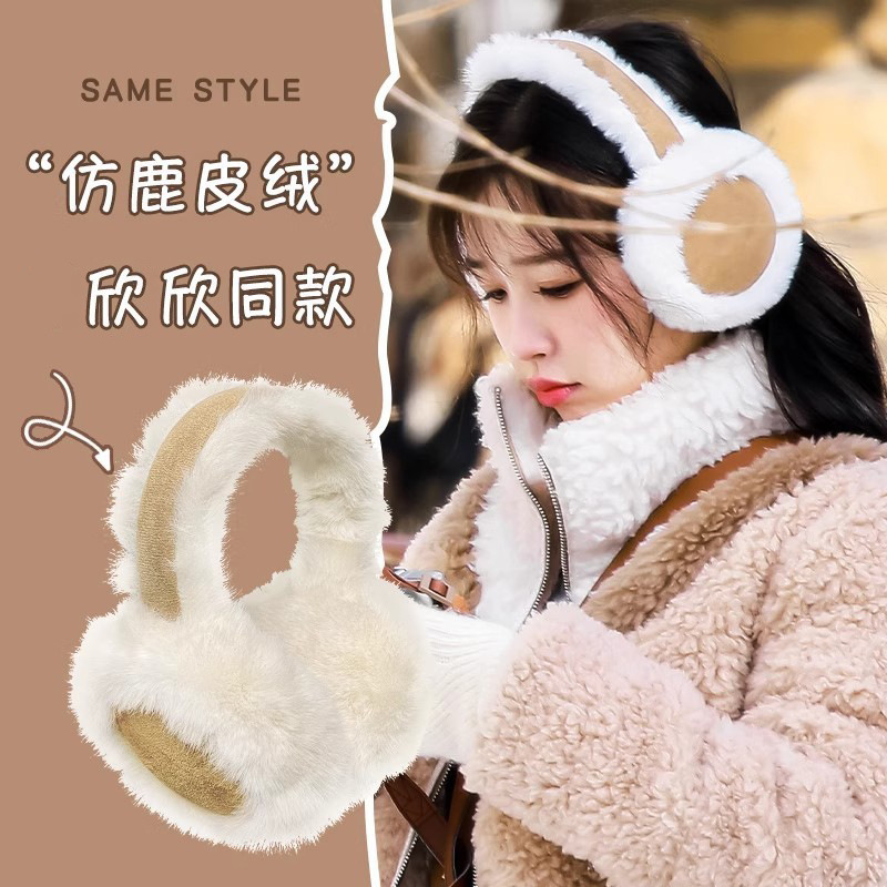 可爱麂皮绒耳罩冬季毛绒耳罩女韩版加绒保暖耳套骑行防寒防冻耳暖