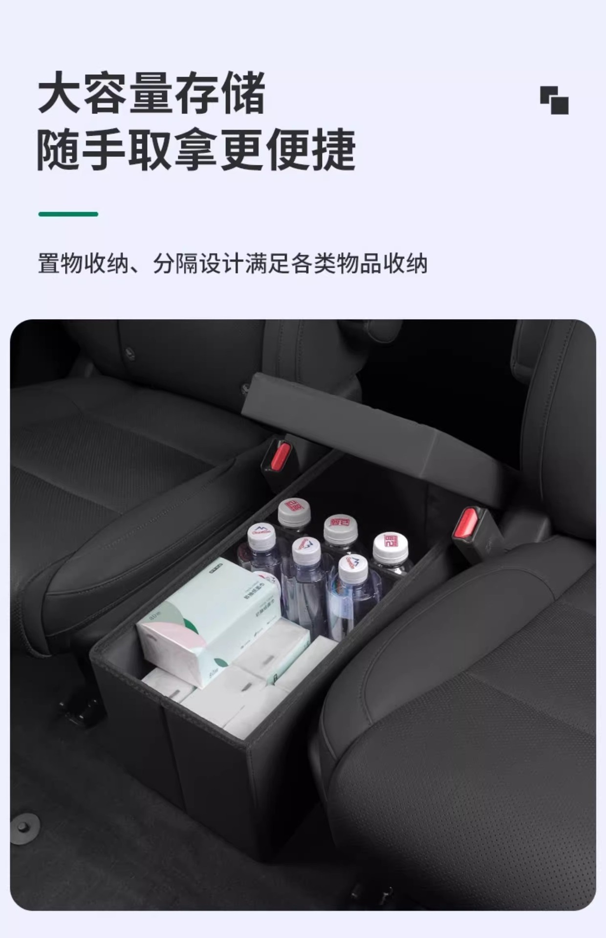 理想L8/L9/i8专用汽车二排座椅中间收纳箱过道可折叠储物盒置物盒