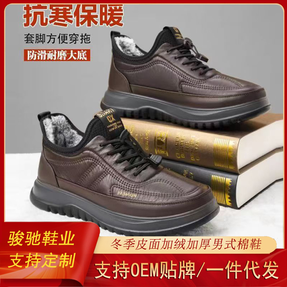 2025新款加绒加厚棉鞋冬季新款舒适保暖雪地鞋防寒皮面男士休闲鞋