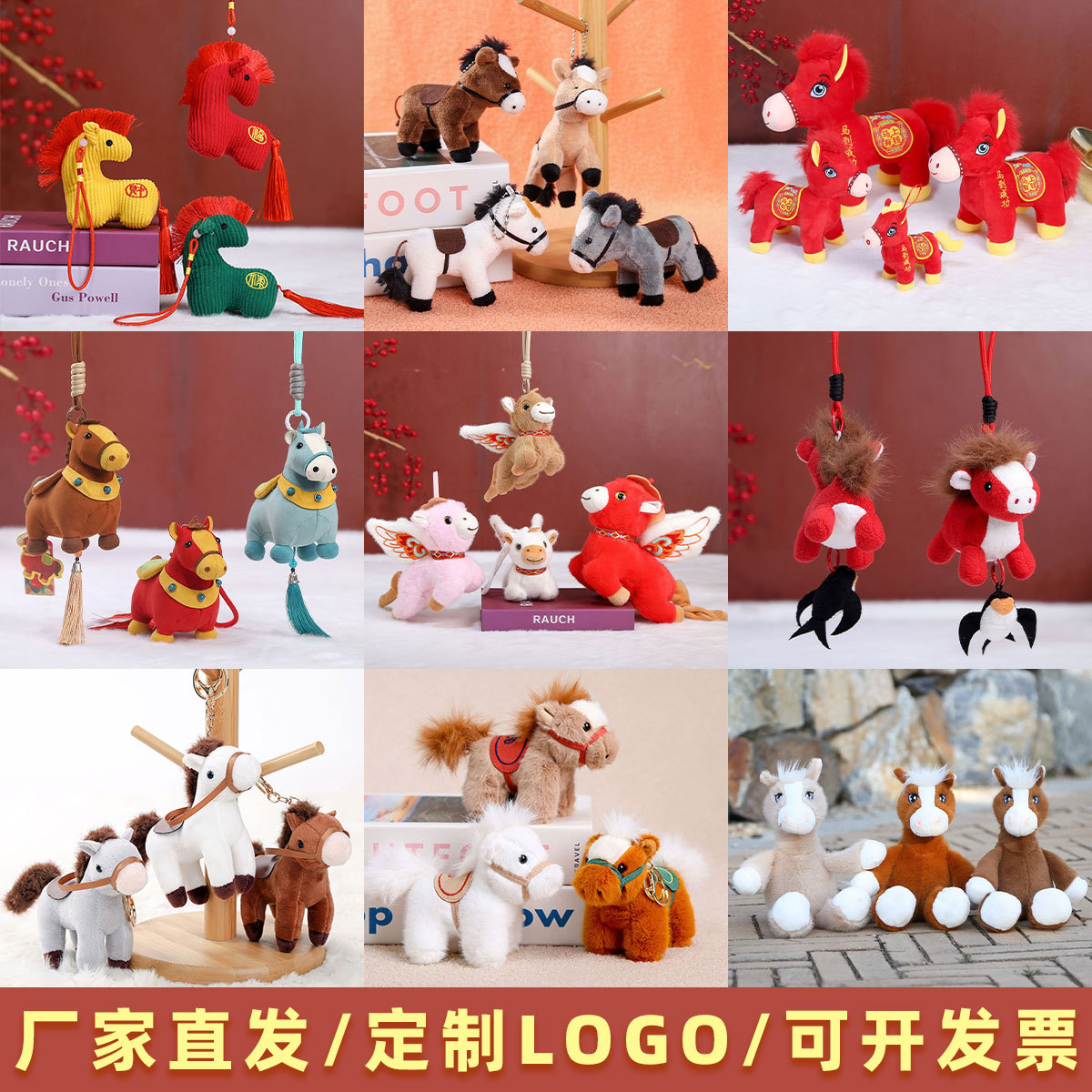 長毛の小型馬のぬいぐるみキーホルダー、バックパック用の小さな人形飾り、卸売、女の子へのプレゼント、布製人形