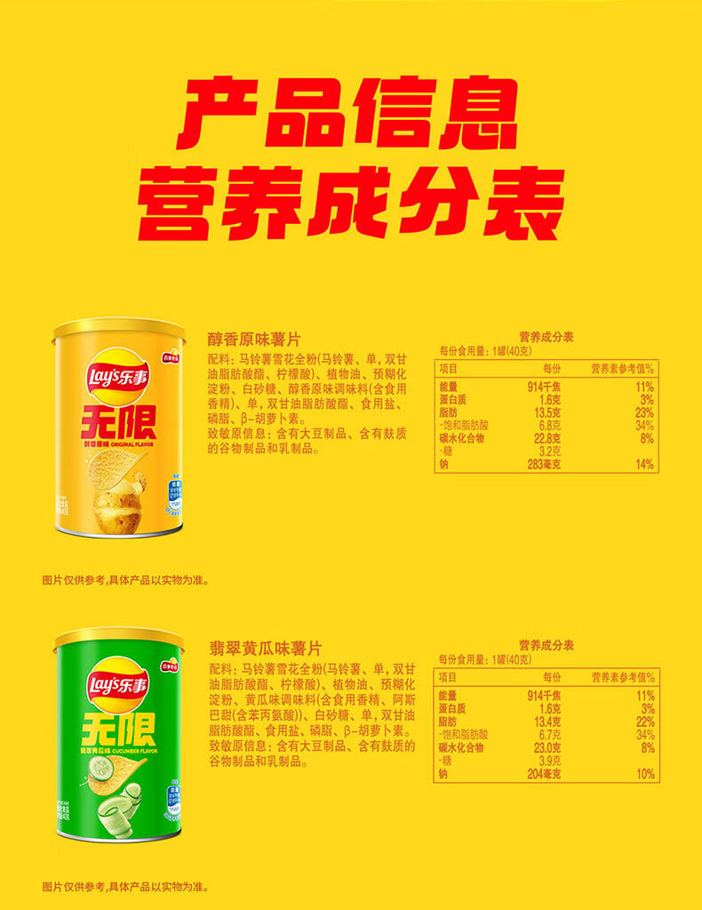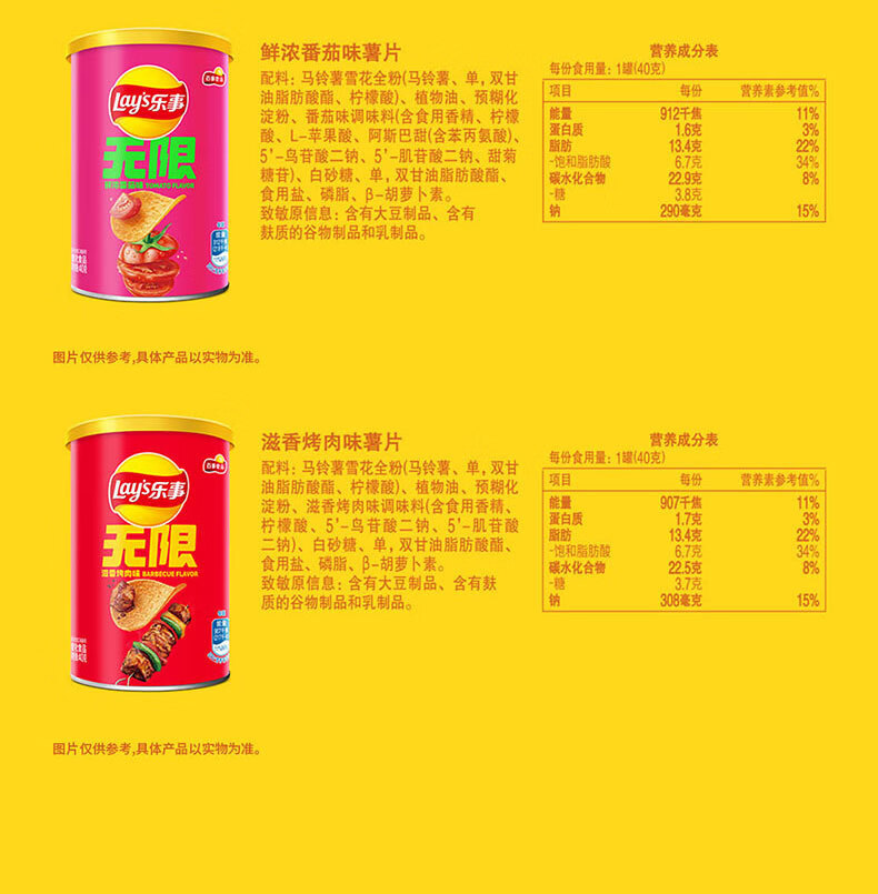 乐事无限薯片便携罐装40g罐原味烧烤膨化办公室休闲零食小吃批发