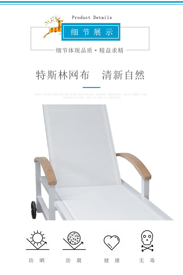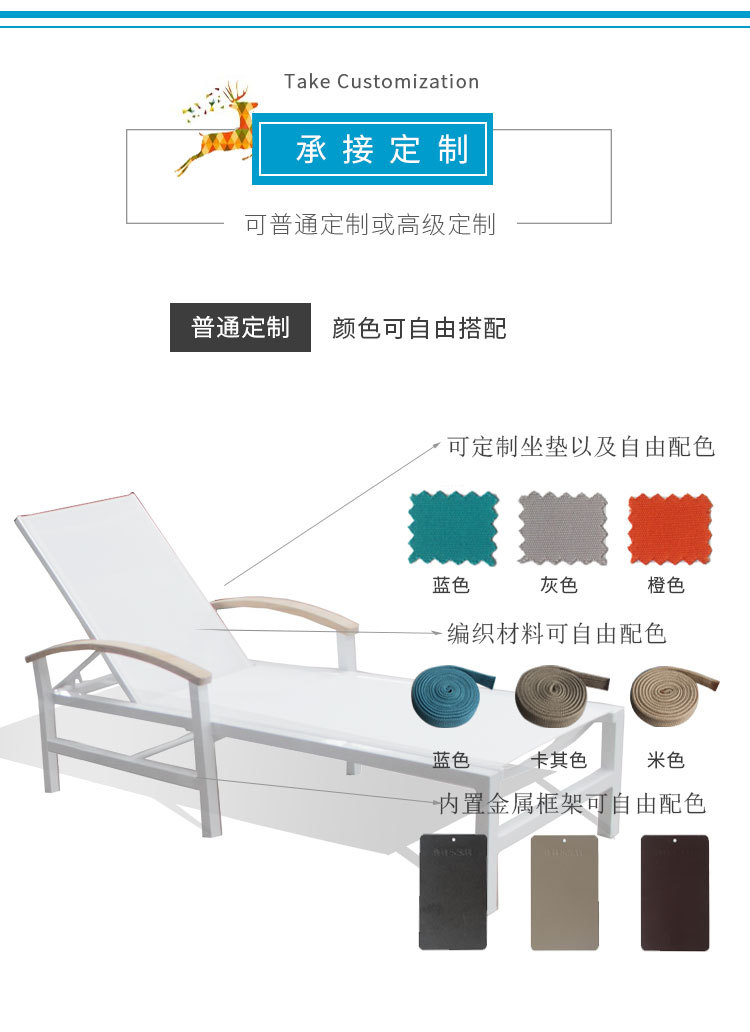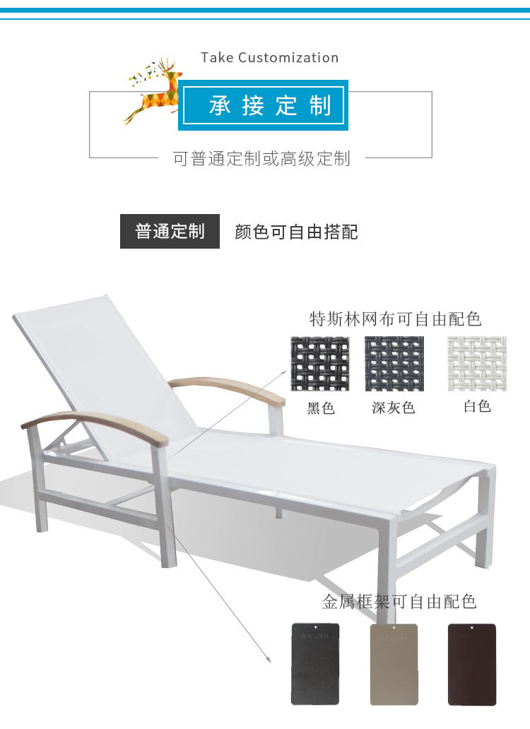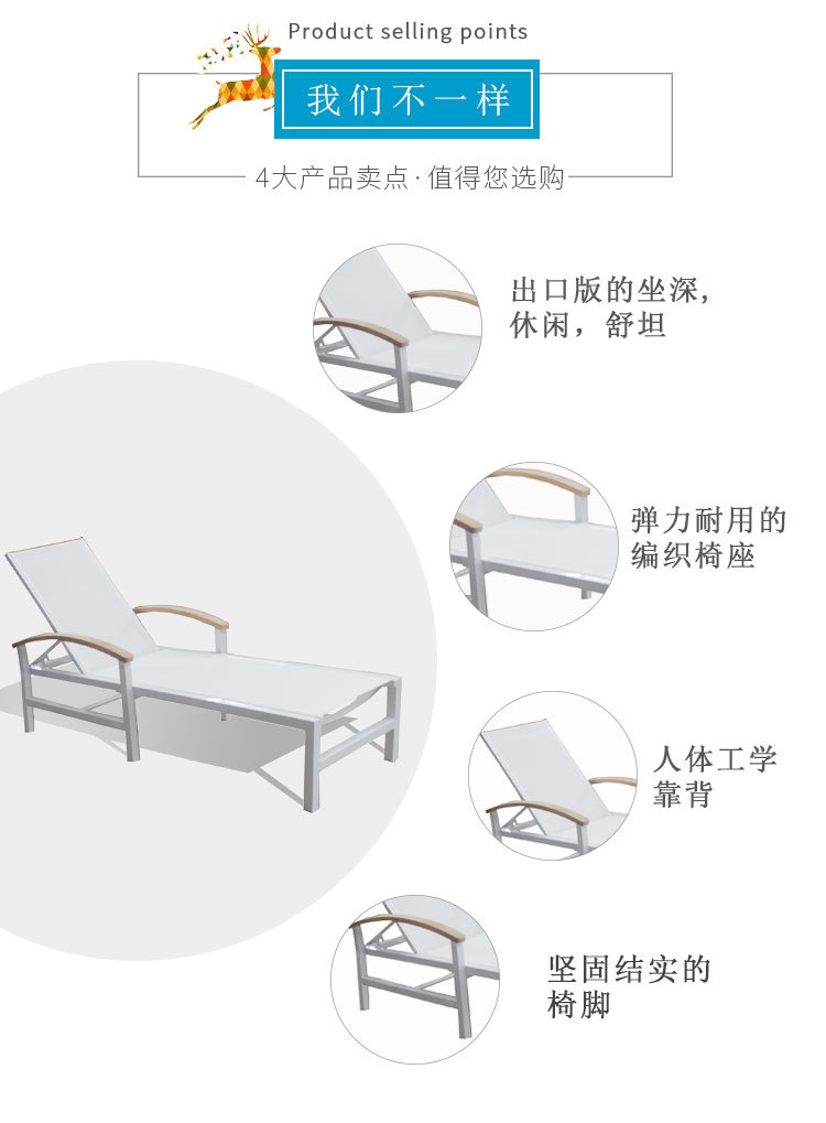 户外铝合金躺床民宿泳池扶手茶几躺椅露天防水防晒日光浴沙滩躺椅