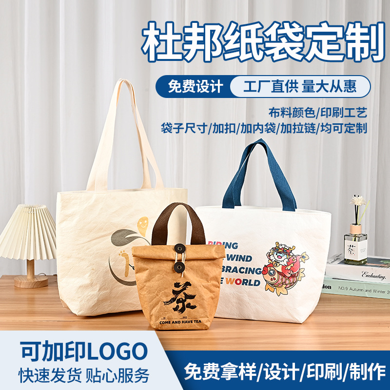 デュポン紙袋印刷可能ロゴ片肩ショッピング手提げ袋広告ギフトバッグ高級レトロ防水クラフト紙袋