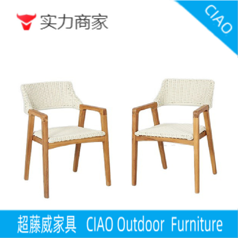 北欧籐椅子中庭バルコニーレジャーバックチェアチーククリーム籐椅子レストラン籐椅子