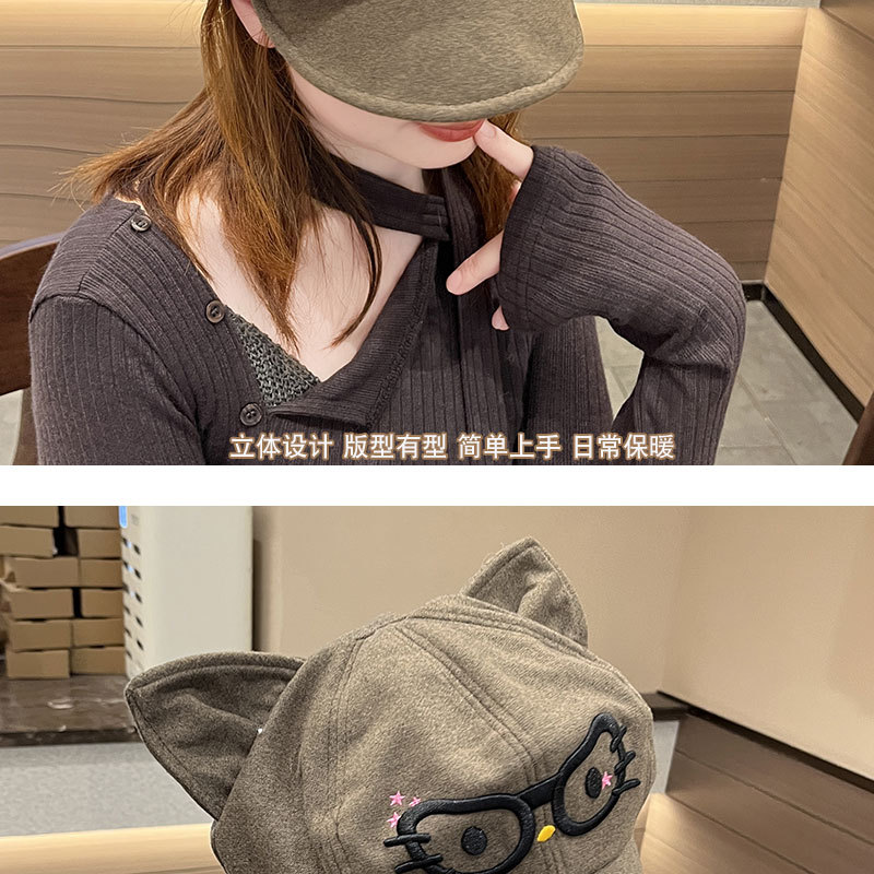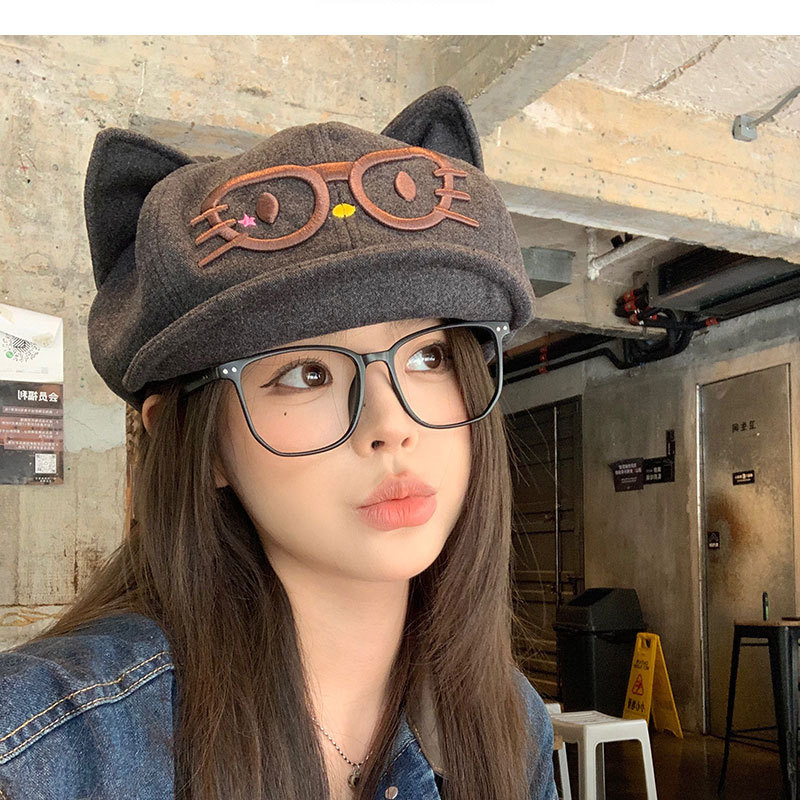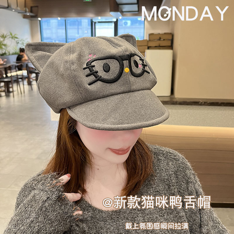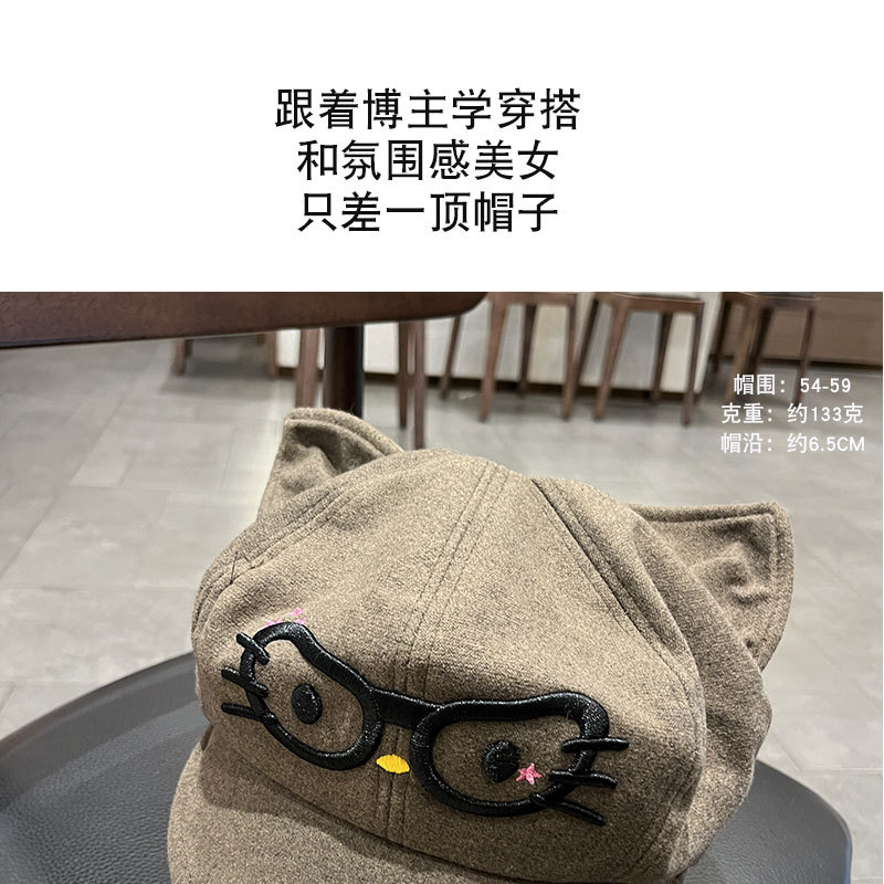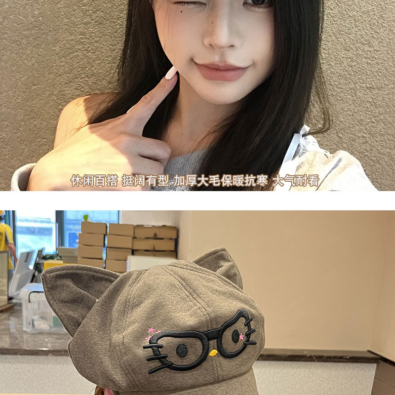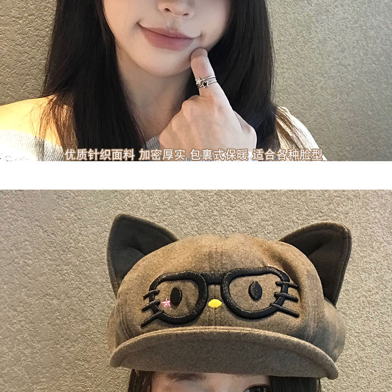 帽子女秋冬眼镜猫咪2025新贝雷帽女显脸小八角帽潮外贸跨境亚马逊