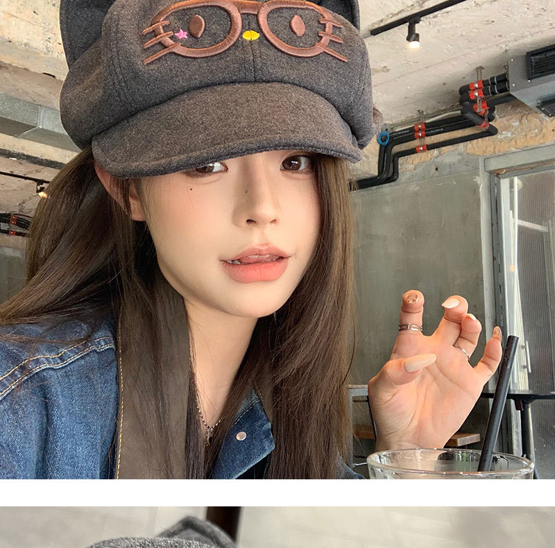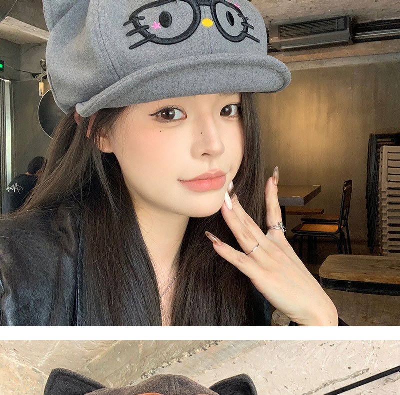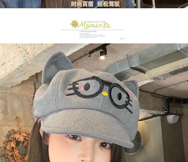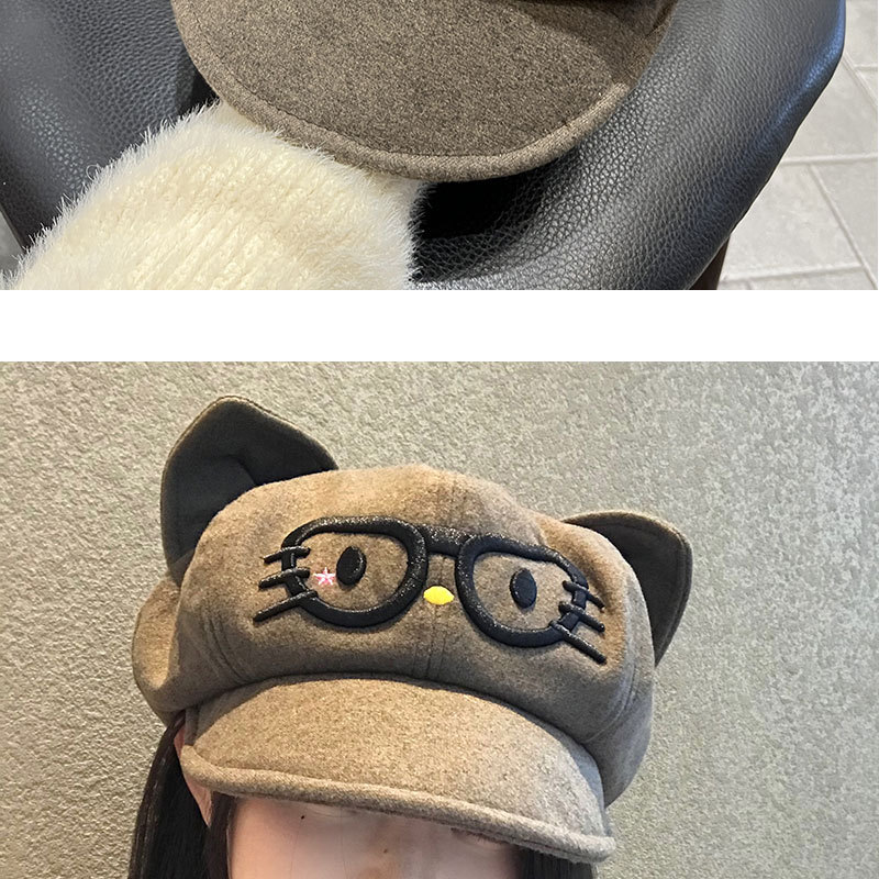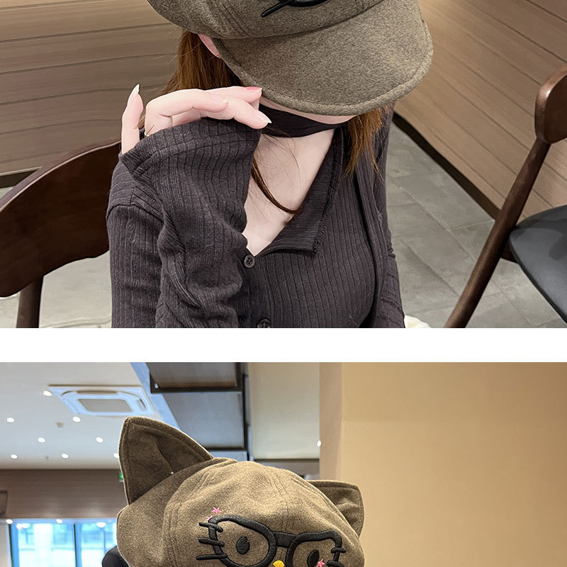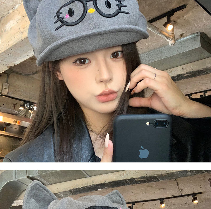 帽子女秋冬眼镜猫咪2025新贝雷帽女显脸小八角帽潮外贸跨境亚马逊