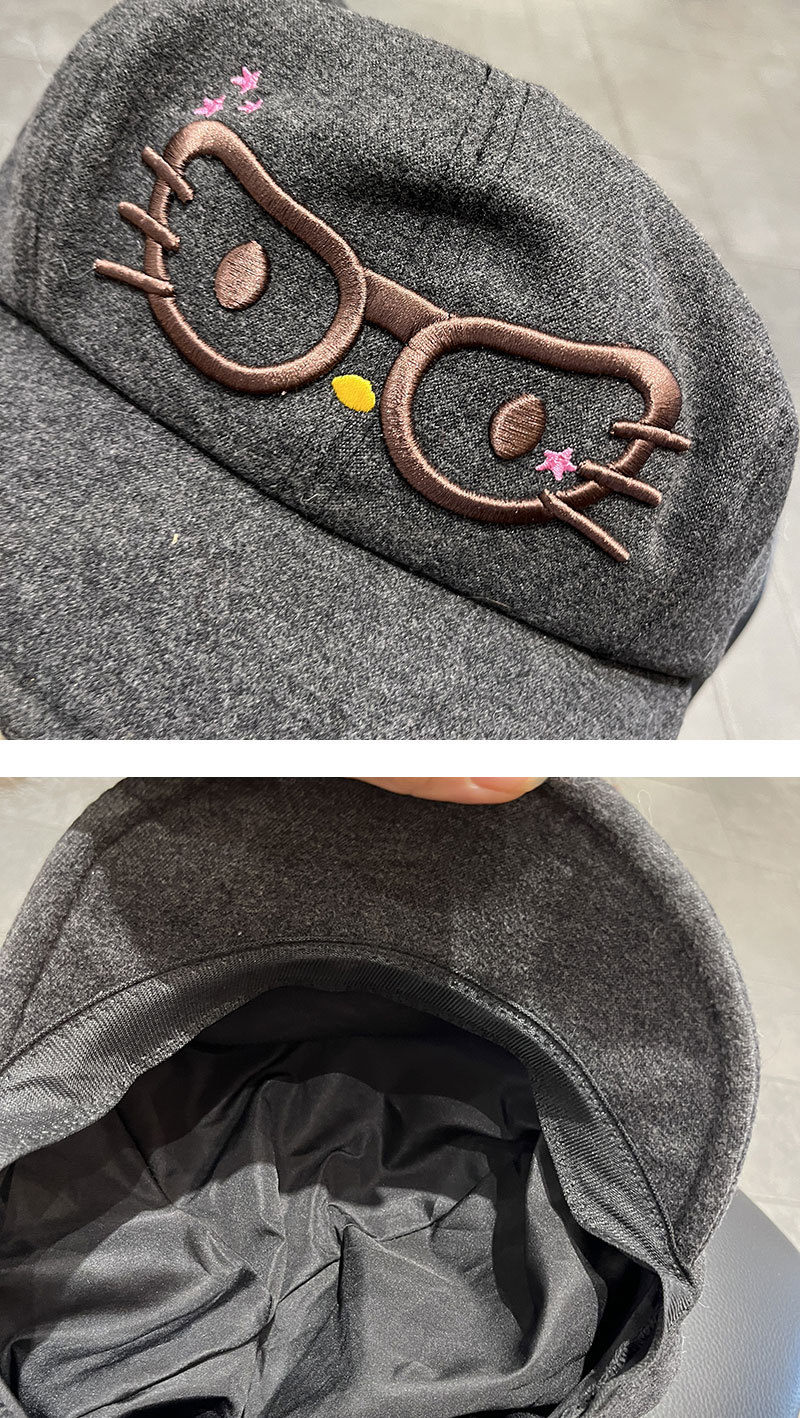 可爱卡通眼镜猫咪耳朵软岩鸭舌帽女甜美百搭大头围显脸小棒球帽子