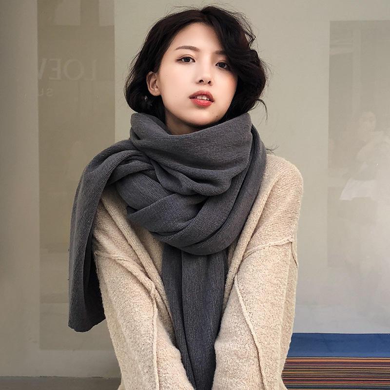 韓国版秋冬マフラー女性ファッション純色百合厚保温学生男女カップルマフラー女性冬モデル