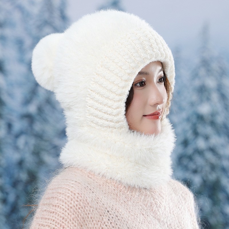 百搭新款高弹力纯色针织帽子围脖口罩连体帽女冬季骑车防风保暖帽