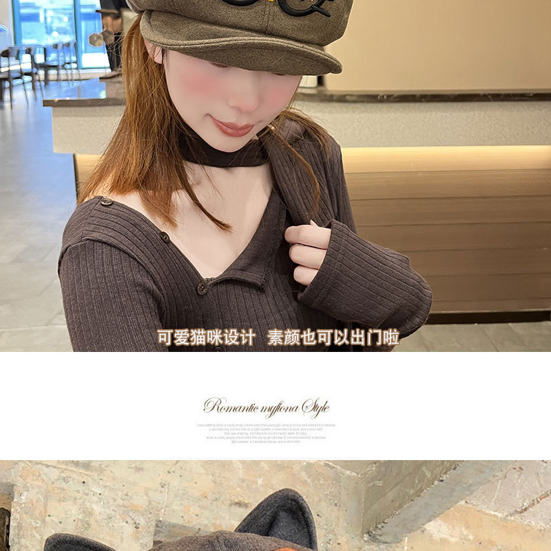 日系可爱卡通猫咪耳朵八角帽女秋冬新款一帽四戴贝雷帽休闲画家帽