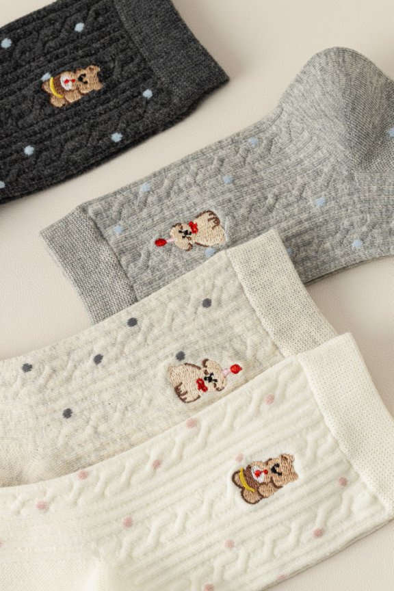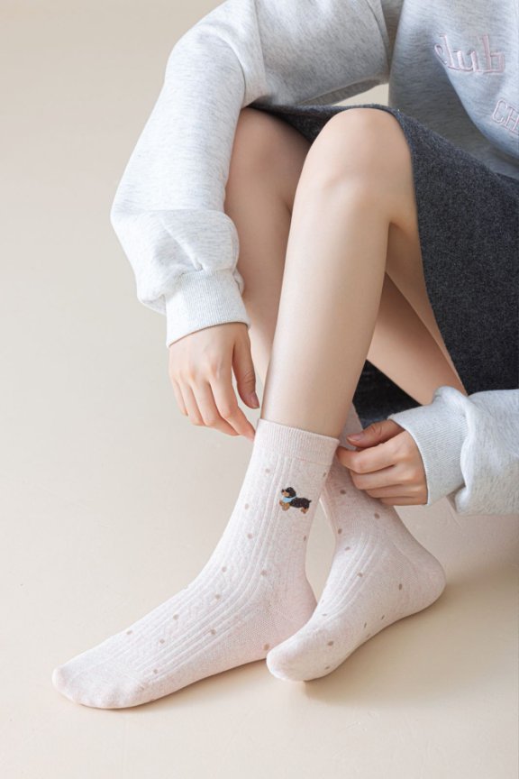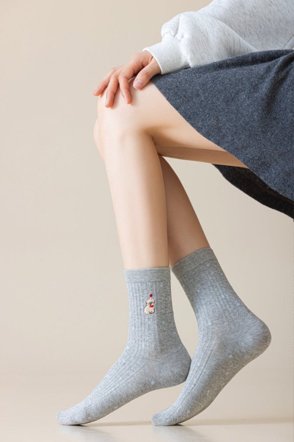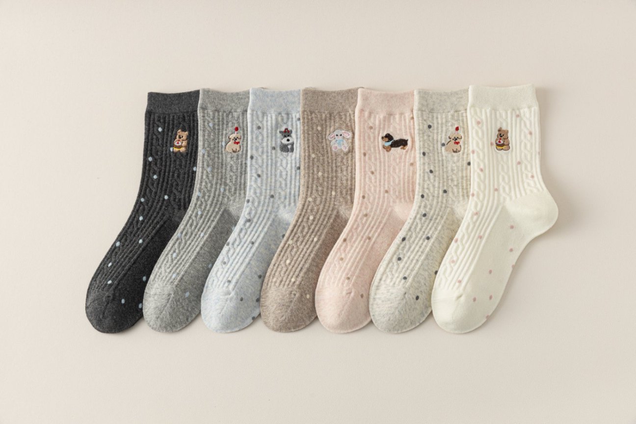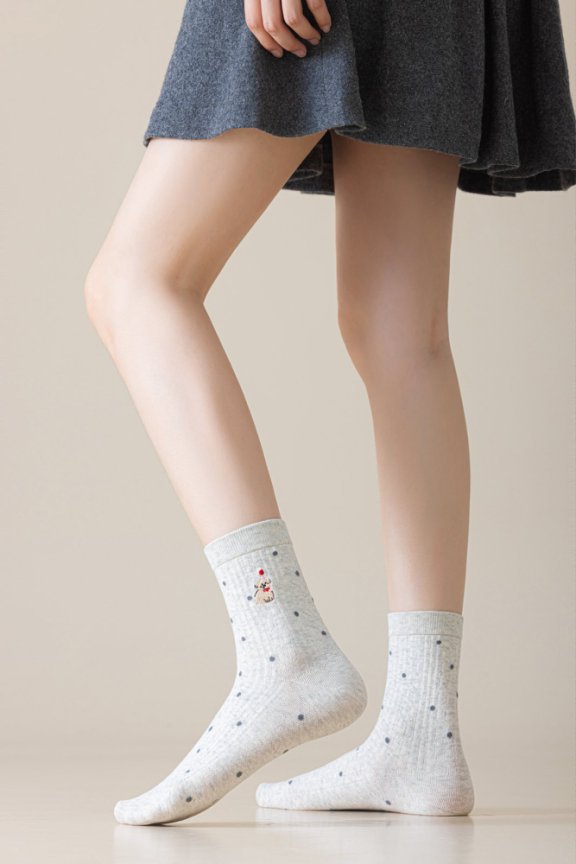 货号 卡通刺绣中筒袜