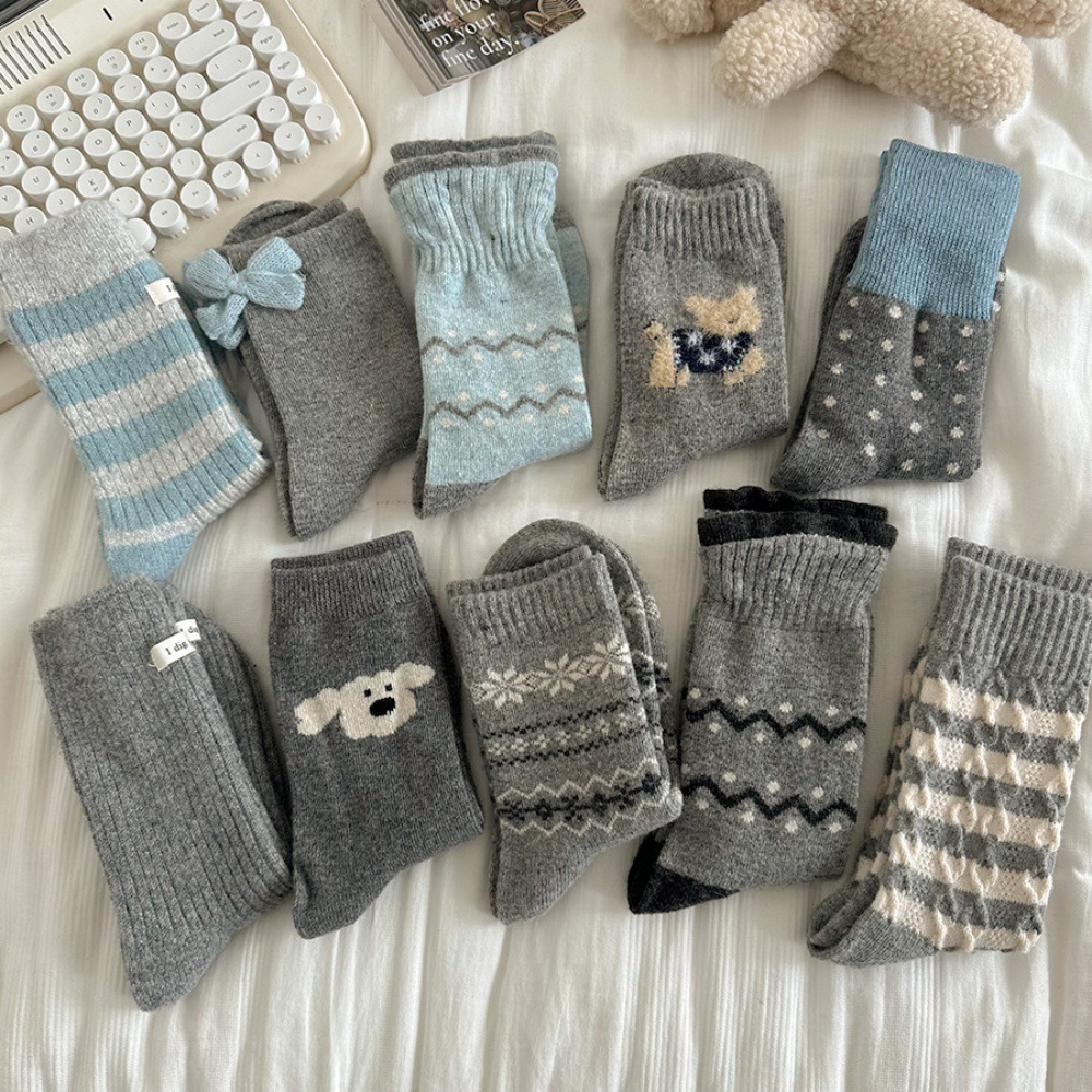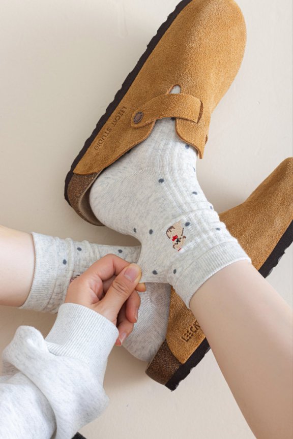 灰色系袜子女秋冬季日系波点中筒袜保暖搭配博肯鞋堆堆袜长袜保暖