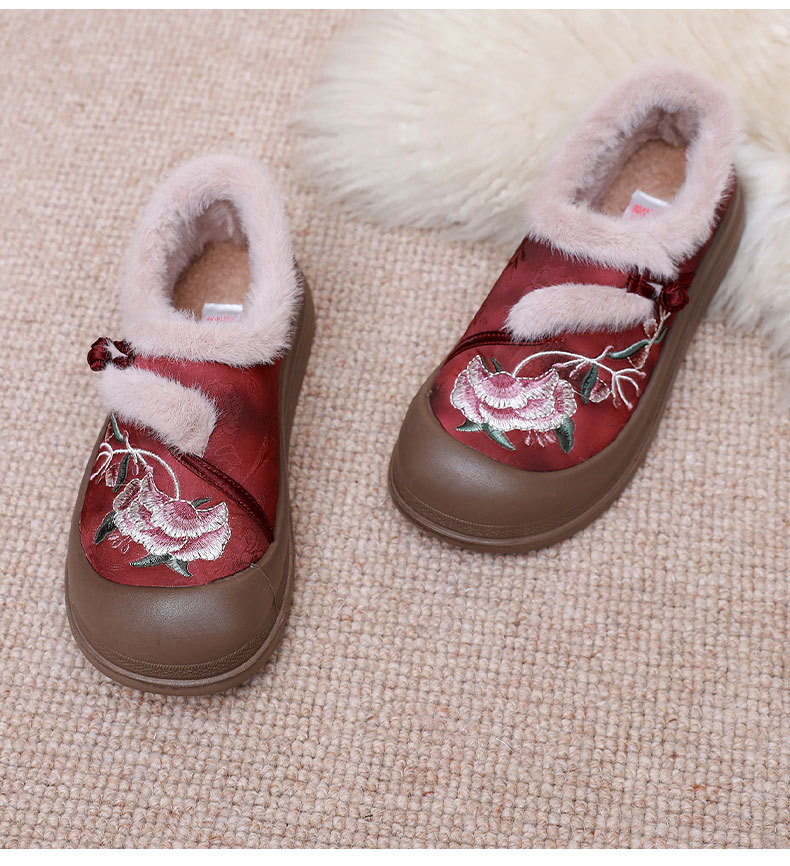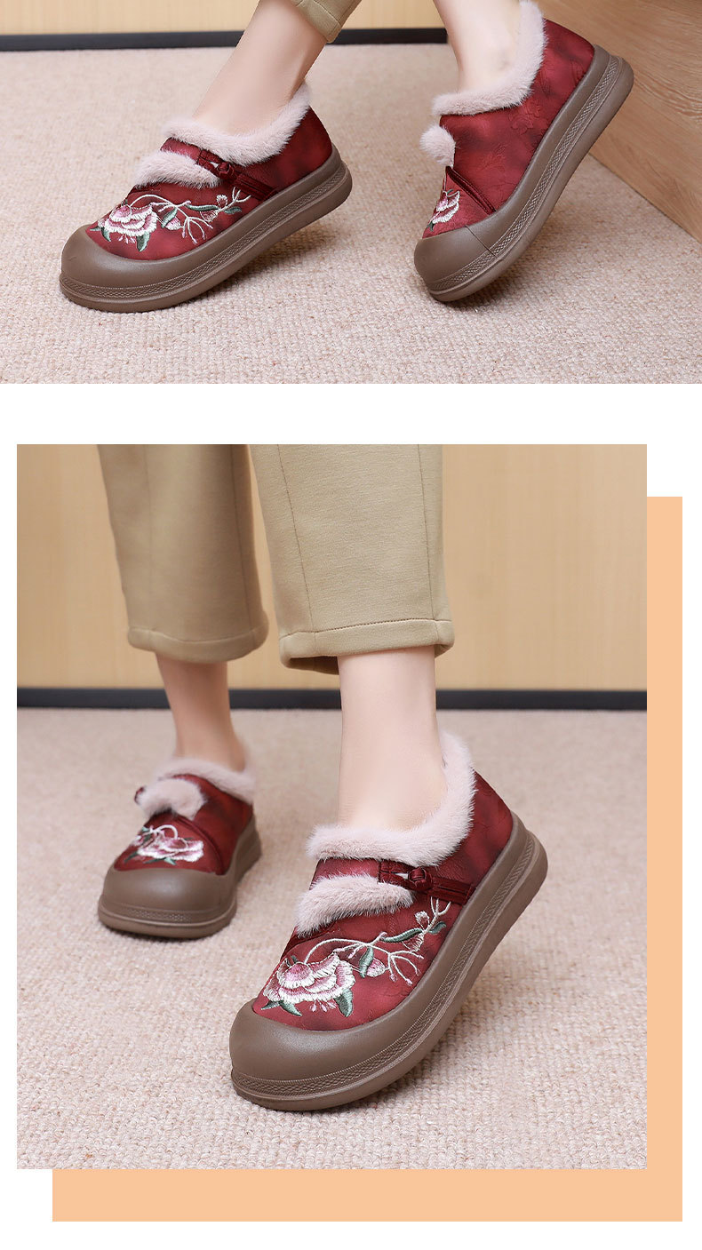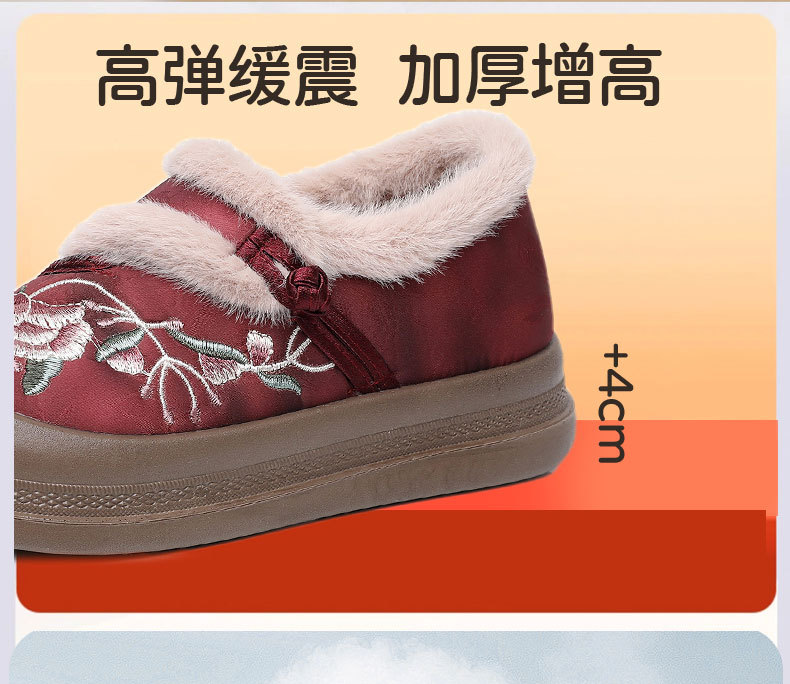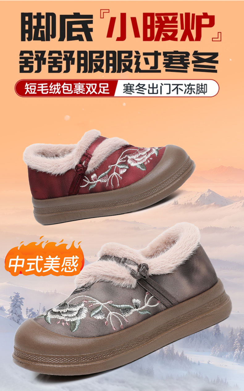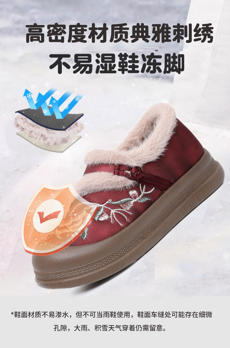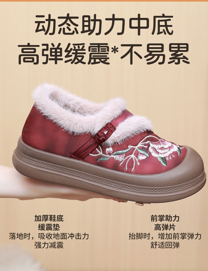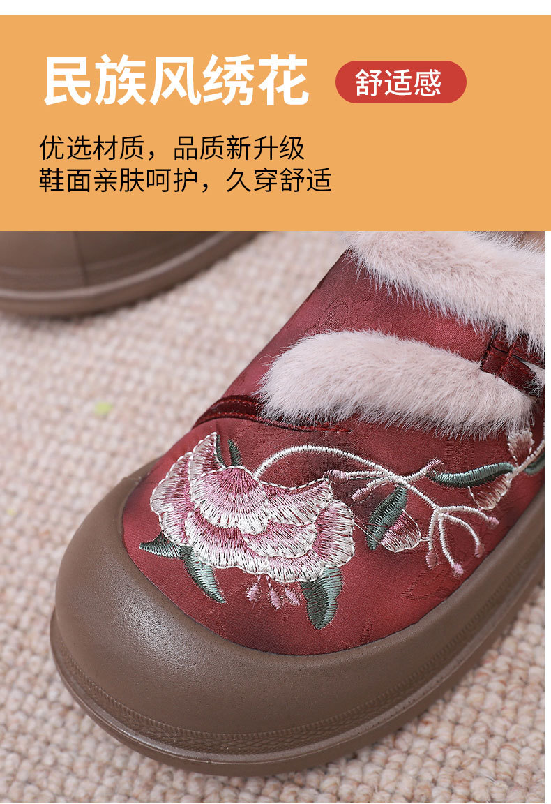 冬季老北京布鞋绣花鞋防滑软底毛毛鞋舒适保暖新中式汉服女棉鞋