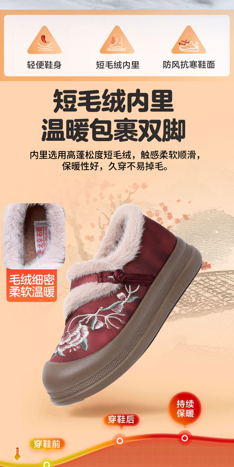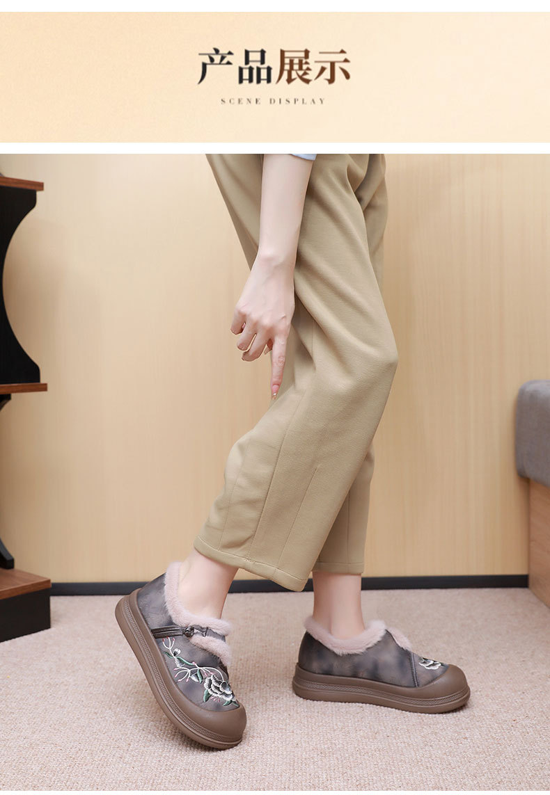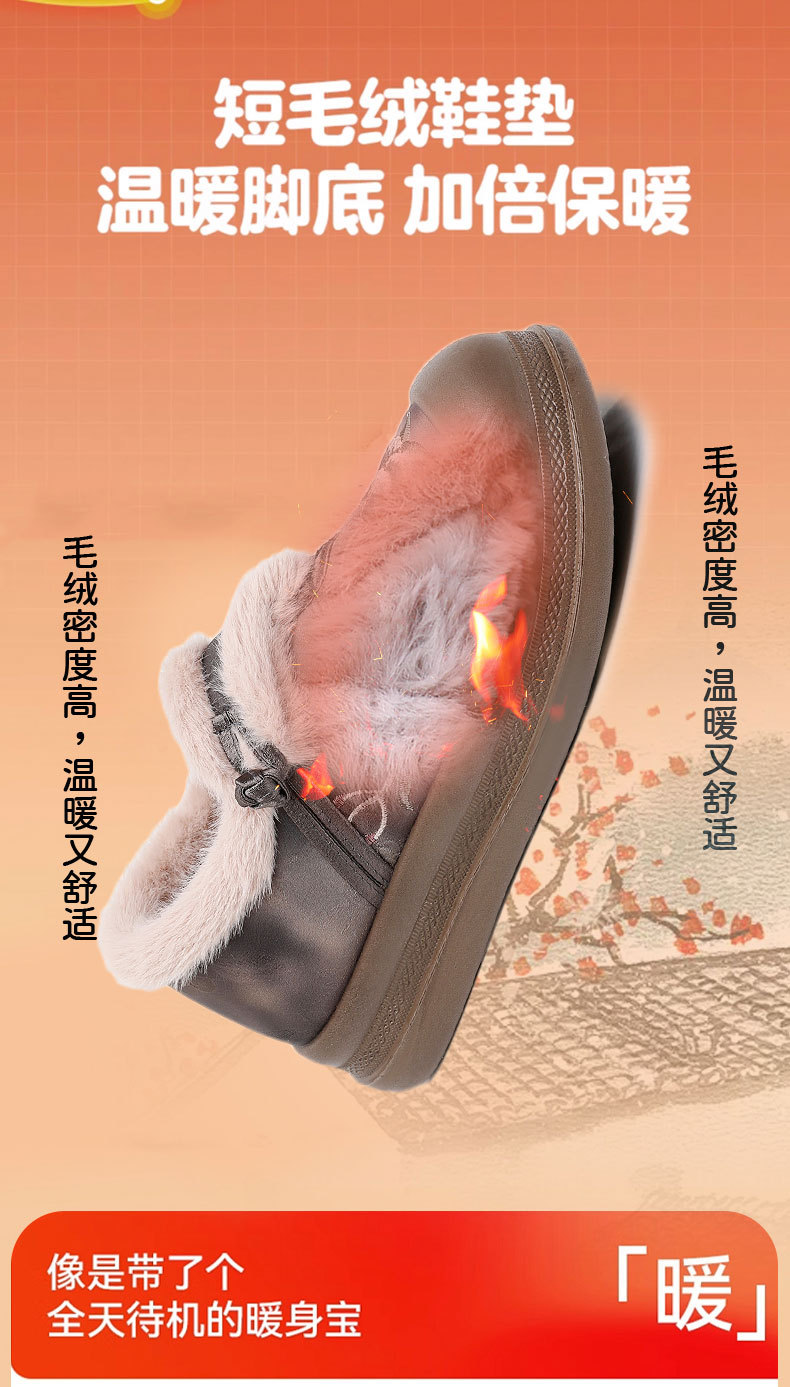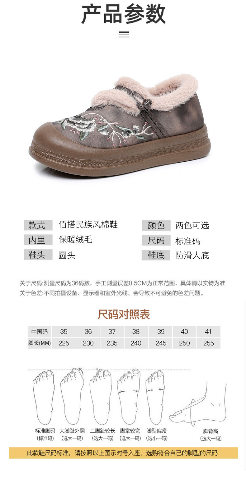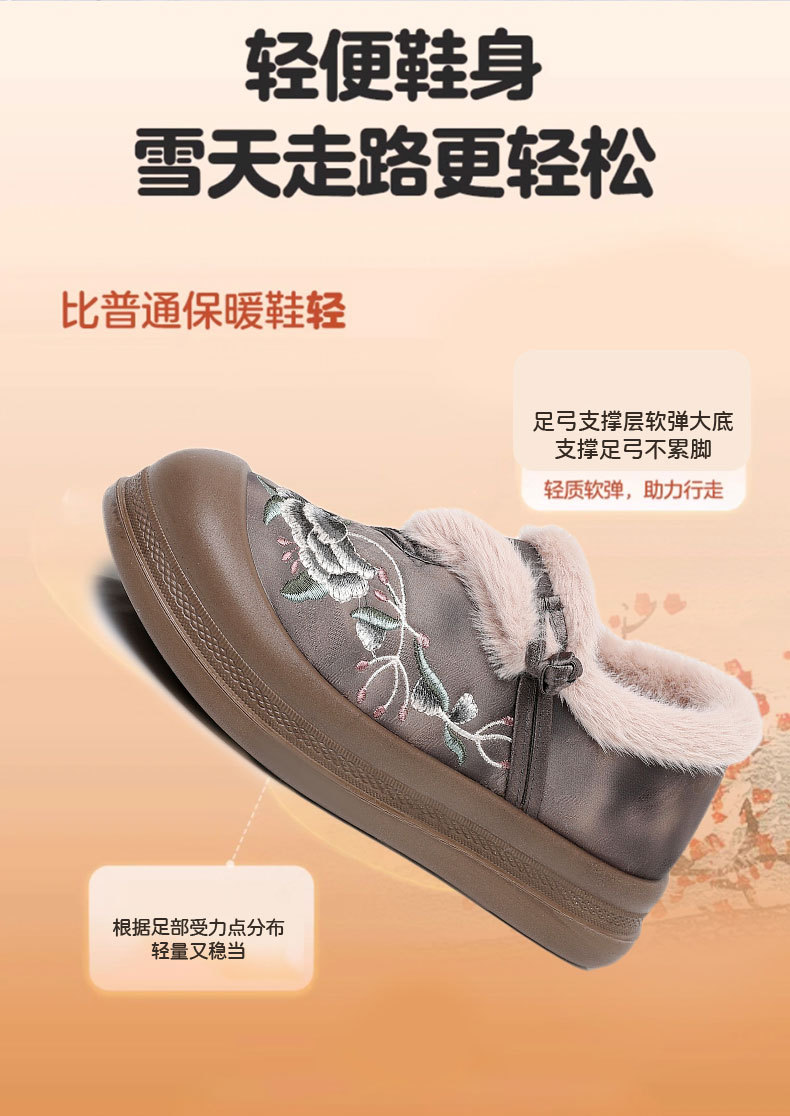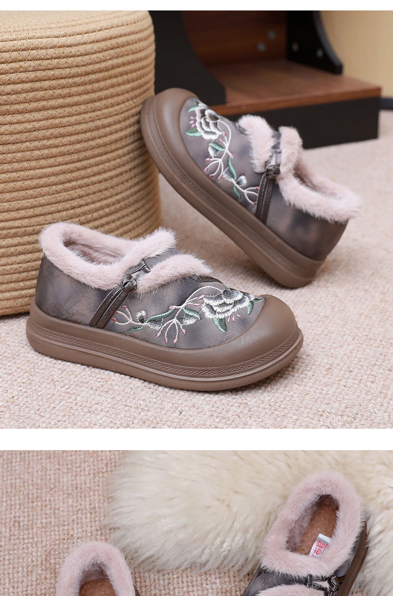 冬季老北京布鞋绣花鞋防滑软底毛毛鞋舒适保暖新中式汉服女棉鞋