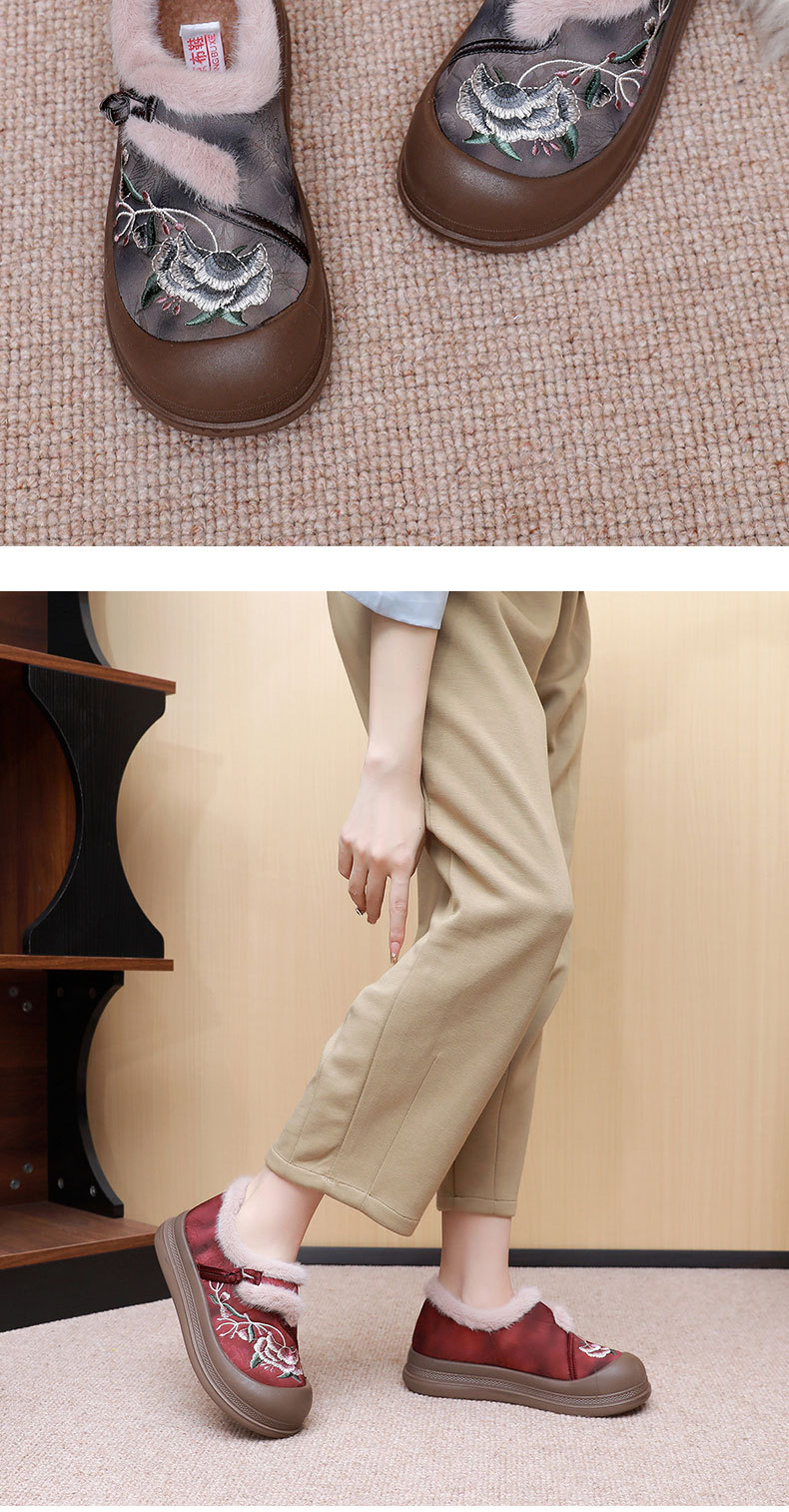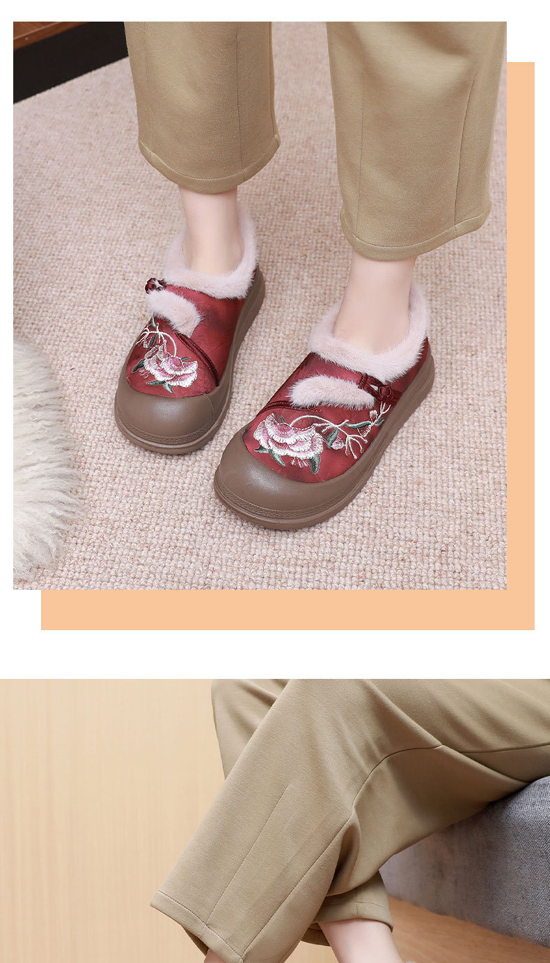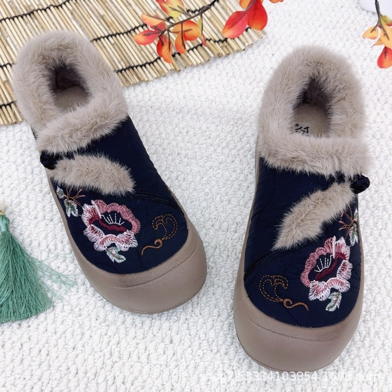冬の暖かい快適な刺繍綿靴古典的な民族風ママ綿靴とベルベットの厚い滑り止め耐摩耗性