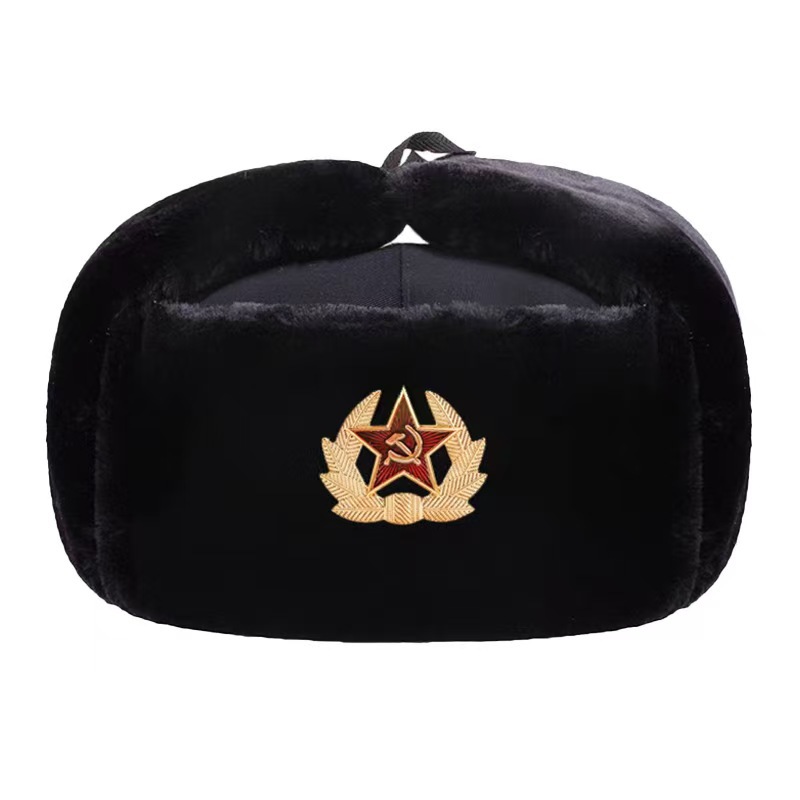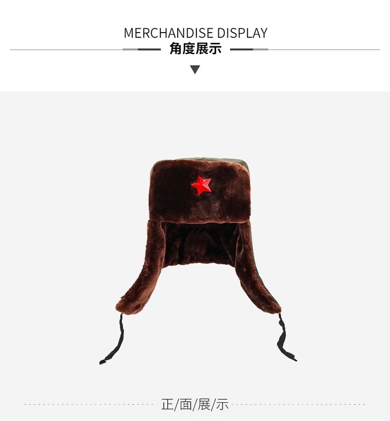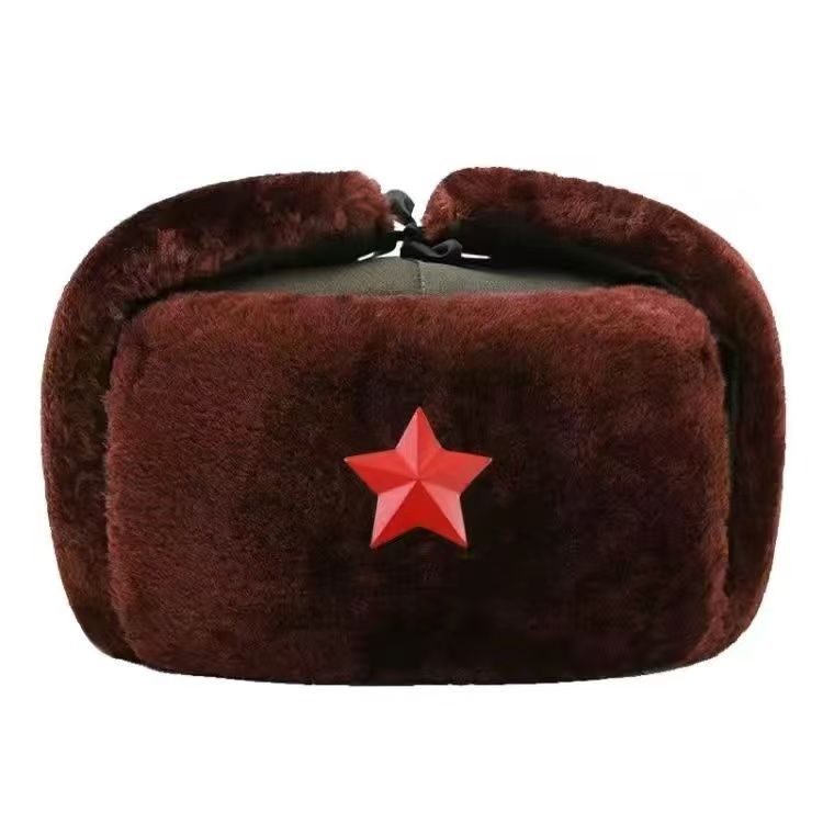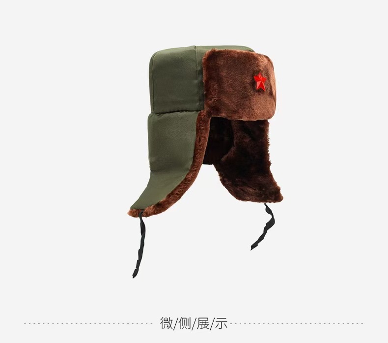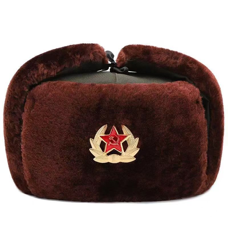 五角星苏联徽章男女冬季户外骑车保暖护耳防寒加厚雷锋帽麦穗红色