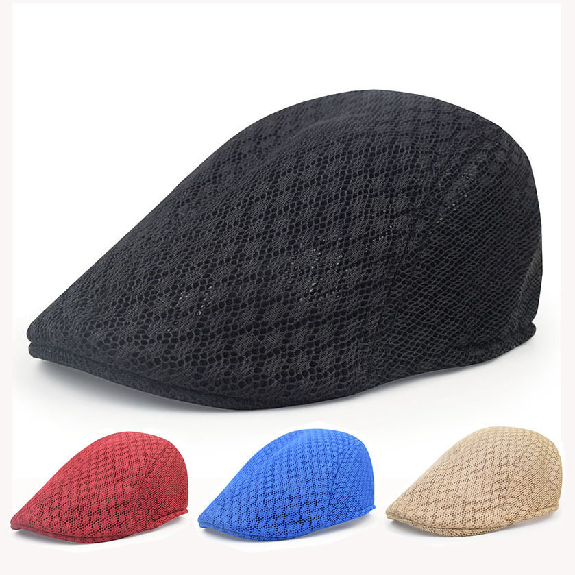夏の帽子のネットの目の卸売りの韓国版の男女のベレーの帽子の純色の透かし彫りのアヒルの舌の帽子の前で帽子を入れて空気を通す夏の太陽の帽子