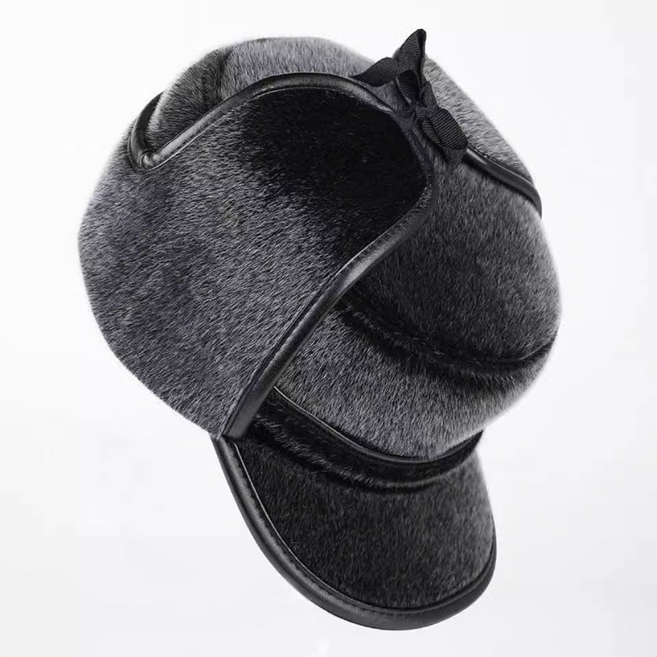 新型冬は保温中高年男性雷鋒帽東北ミンク毛皮防寒地主綿帽子を厚くした