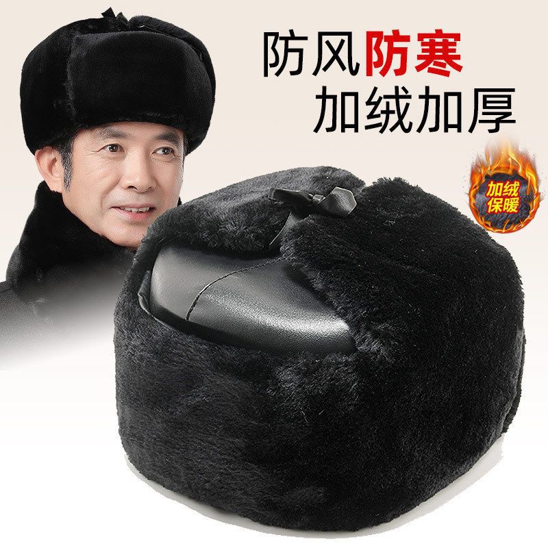 雷鋒帽とベルベットの厚い保温帽雪地帽警備勤務老人綿帽子男性用冬の屋外防寒