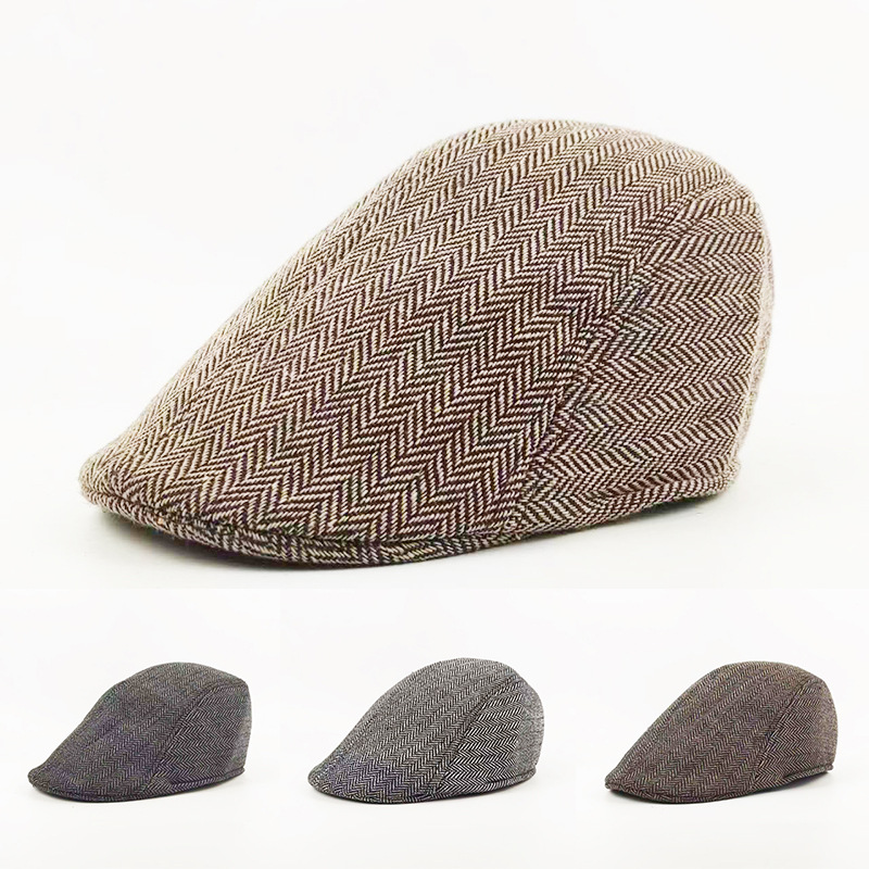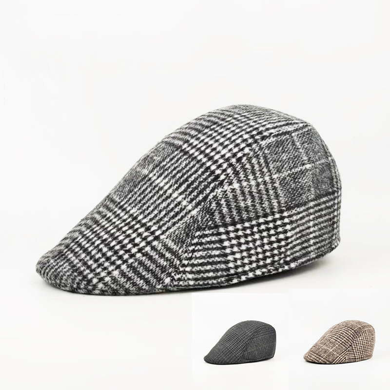 レトロな毛です。アヒルの舌の帽子は男女秋冬の格子のベレー帽です。