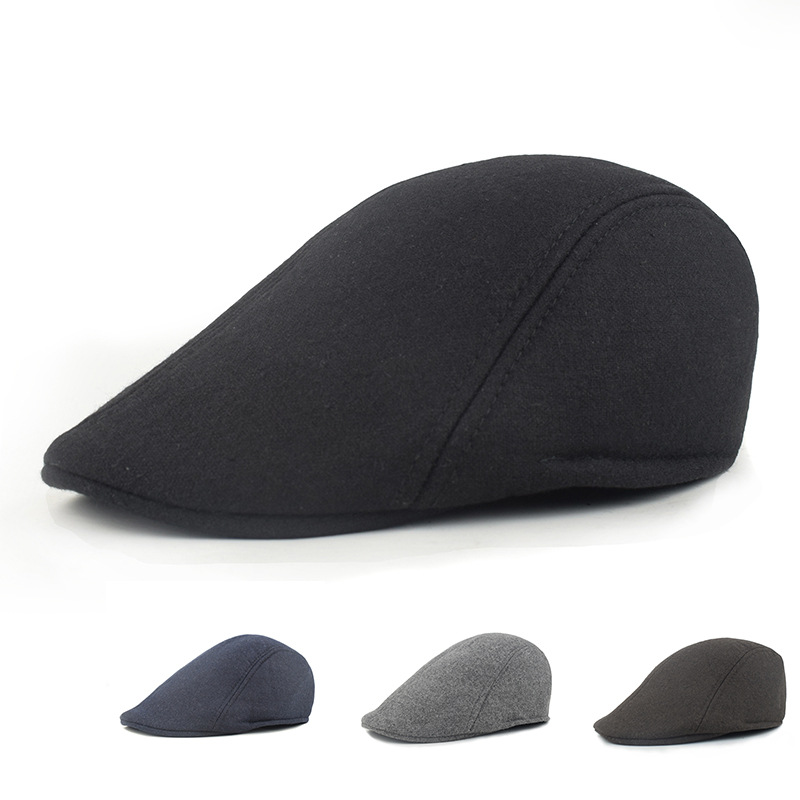 メンズ冬用ベレー帽、ウール無地キャップ、無地帽子、春秋韓国風前進帽、レディース英国風レトロファッション