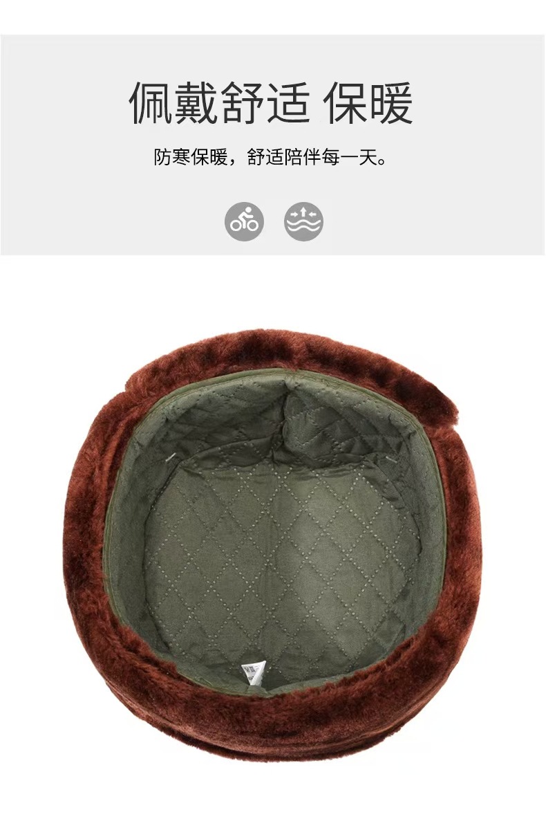 秋冬新款加绒加厚中老年保暖护耳脖子大帽檐鸭舌帽户外防风40°